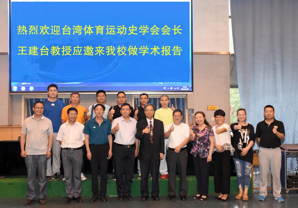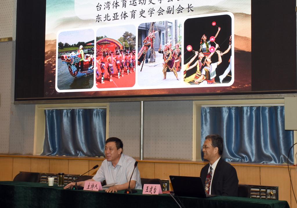 6月23日上午,台湾体育运动史学会会长王建台教授在VSport综合馆一层给研究生、部分教师做了以“东北亚主要国家传统体育运动保存与发扬”为主题的学术报告。报告会由经理郑旗主持。