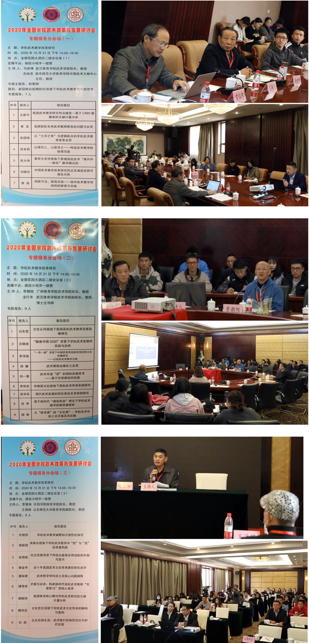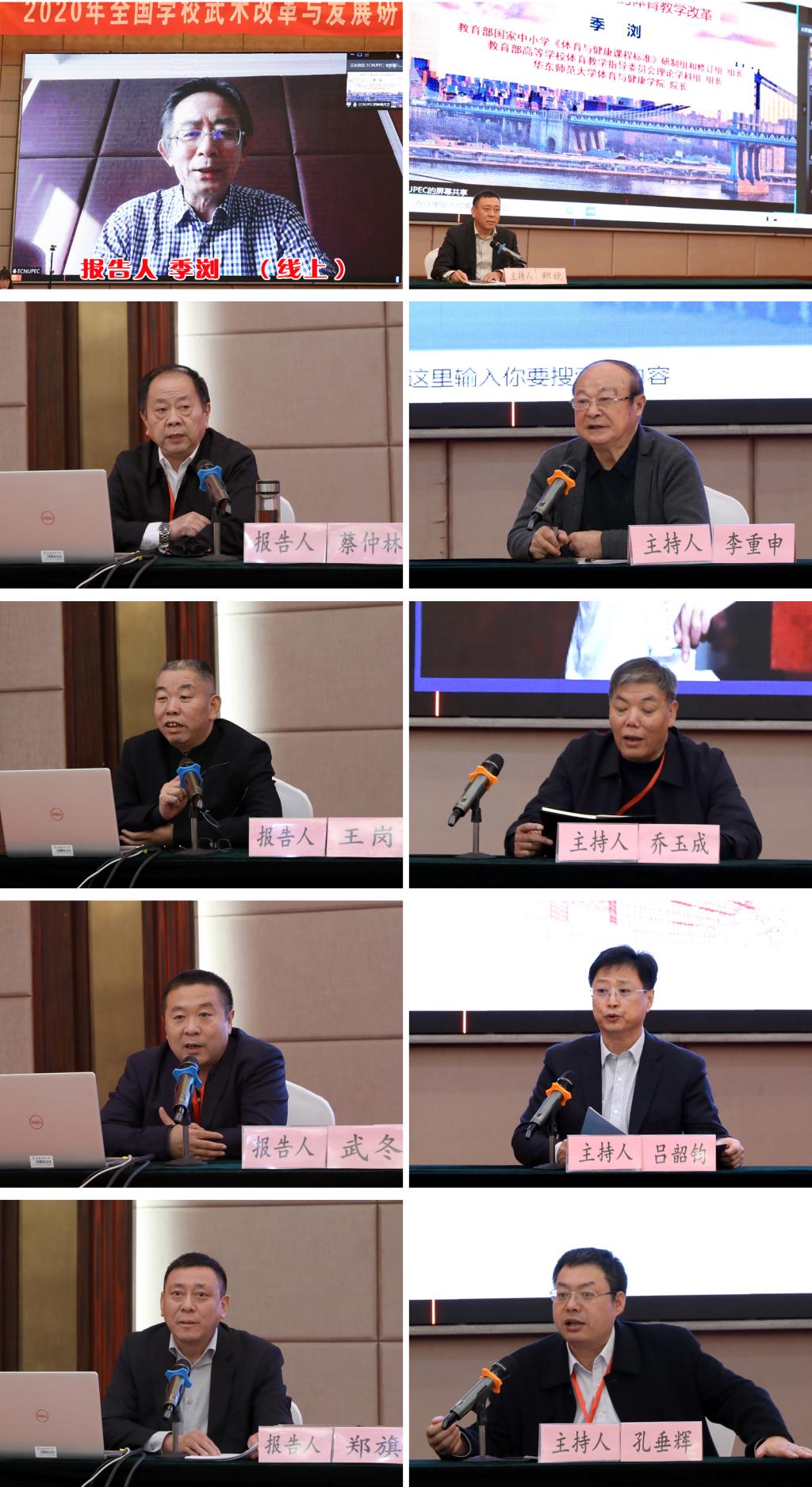 专题报告环节采用“线上报告+现场点评”的方式进行,VSport权黎明副教授在现场做了题为《新冠肺炎疫情防控语境下公司武术教育发展新思考》的报告,其余25位论文作者围绕“公司武术教学改革研究”、“公司武术发展研究”、“公司武术文化传承研究”等主题做了专题交流。武汉VSport马世坤教授、南京师范大学吉灿忠教授、广州VSport李朝旭教授、武汉VSport龙行年教授、许昌公司李慧林教授、山东师范大学王海鸥教授在会议现场对报告做了精彩点评。