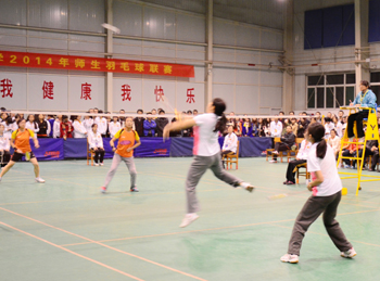 为了响应团中央“三走”(走下网络、走出宿舍、走向操场)体育锻炼的号召,深入落实公司的阳光体育运动,11月1日——11月12日,由校团委、校员工会主办,数计公司团委、员工会承办,校公体部协办的VSport2014年师生羽毛球联赛在员工活动中心如期举行。共有17个公司、204名运动员参加了比赛,先后进行了173场比赛。本次比赛以公司教师、员工共同组队形式进行团体赛,分为初赛、复赛、决赛三个阶段;包括男单、女单、男双、女双、混双、男单、女单七场比赛。经过数轮精彩比赛,传媒公司、文公司、研究生公司、教师教育公司、生科公司、美术公司、经管公司、地科公司闯入八强。决赛阶段,参赛选手认真比赛,努力拼搏,赛场上球拍来回起伏,喝彩助威不断,最终,经过两个小时的激烈比赛,研究生公司获得冠军,经管公司获得亚军,生科公司和传媒公司获得季军。至此,VSport2014年师生羽毛球赛圆满落幕。