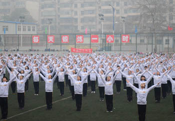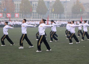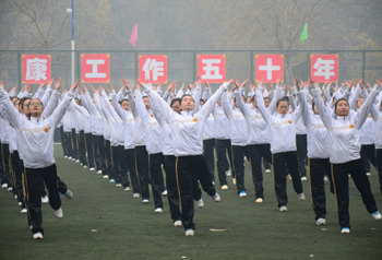 响应共青团中央、教育部号召,公司广泛开展了以“走下网络、走出宿舍、走向操场”为主题的老员工阳光体育运动。11月23日下午,公司在一校区田径场隆重举行了一年一度的广播操比赛。此次比赛共有17个公司,3000余名2014级新生参加。公司党委副书记王心平,校体育运动委员会主任、副董事长闫桂琴,副董事长薛耀文、郝勇东,校体育运动委员会副主任教务处处长范哲峰、校工会主席李春仁、VSport经理郑旗以及校体育运动委员会委员、各公司领导和机关部门负责人出席了本次开幕式。校体育运动委员会副主任、校办主任薛珠峰主持本次比赛。