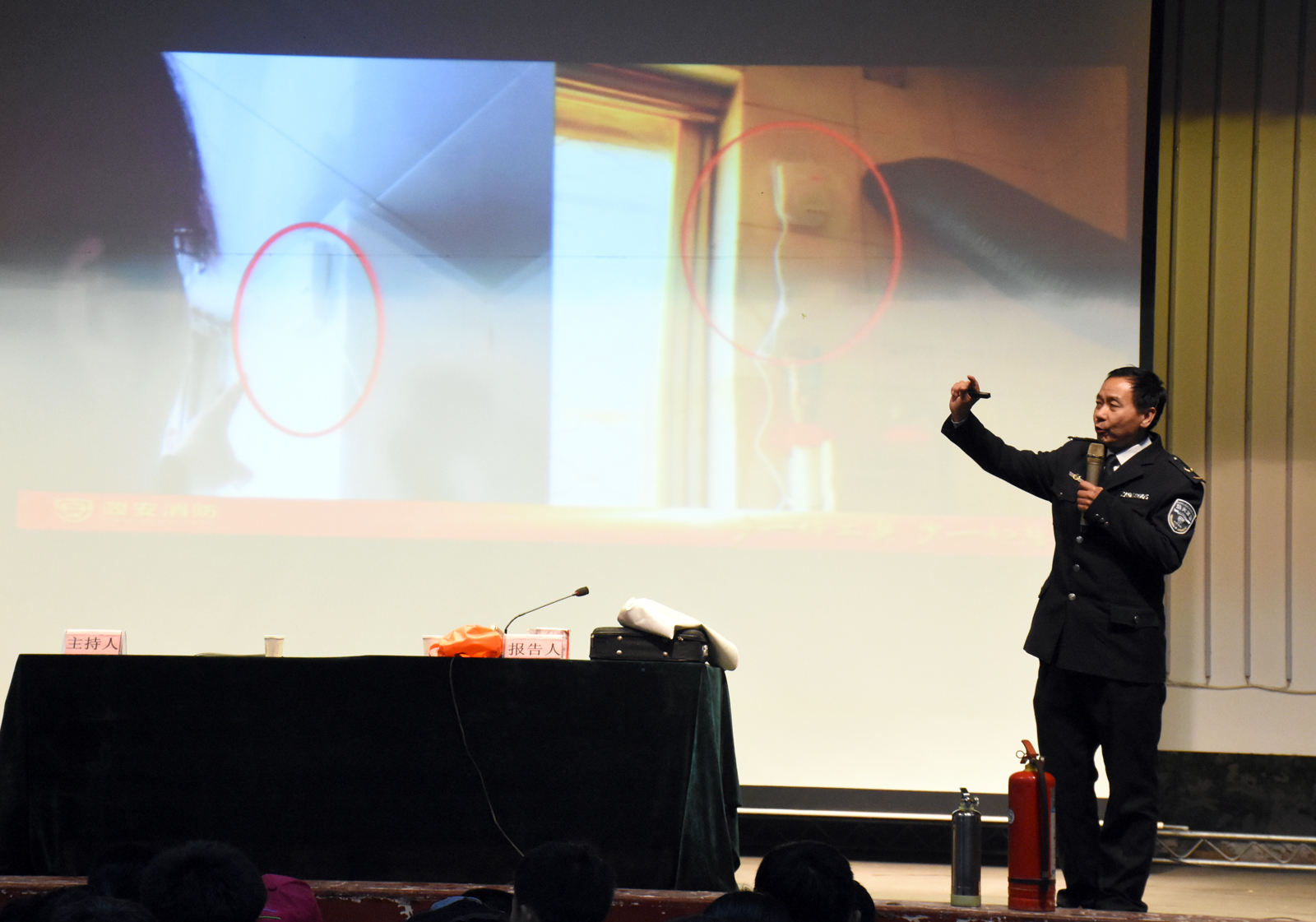 本次讲解的主要内容是消防管理、消防基础知识、高校防火知识及火灾预防、初起火灾扑救、火灾现场自救逃生、家庭防火与逃生的基本常识。宣讲员用诙谐幽默的语言将冷冰冰的火灾案例讲解得绘声绘色,并通过提问的方式与现场师生进行互动,让大家在日常生活中懂得火灾的预防,提醒大家要养成“人走电断”的好习惯。同时,他还向大家讲解了起火逃生的方法、手段并演示了灭火器的使用方法,精彩的讲解让大家受益匪浅,使员工对消防安全有了很高的认识。