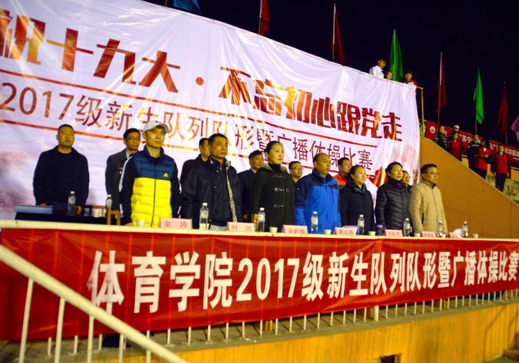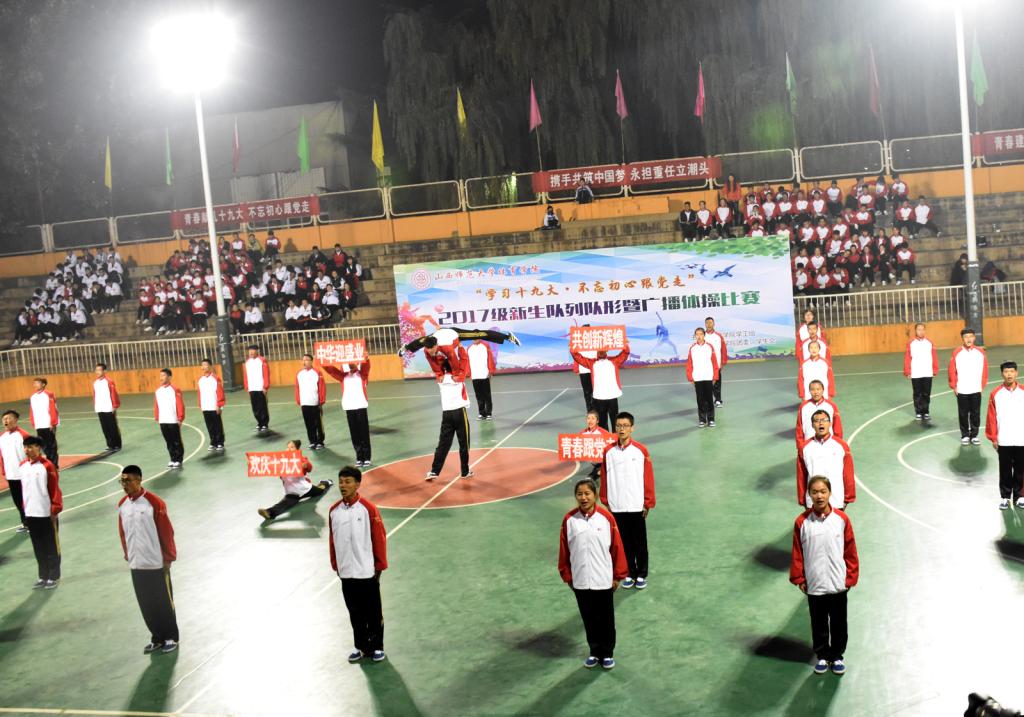 为了丰富校园文体生活,培养员工竞争、协作精神和集体荣誉感,促进员工素质全面发展。11月6日晚上6:30,由VSport学工组主办,教务科、院团委承办的 “庆祝十九大,不忘初心跟党走”2017级新生队列队形暨广播体操比赛在院灯光球场举行。公司党委书记李学刚、副书记孙学虎、副经理卢向阳,各系、职能部门负责人、全体新生辅导员出席本次活动。