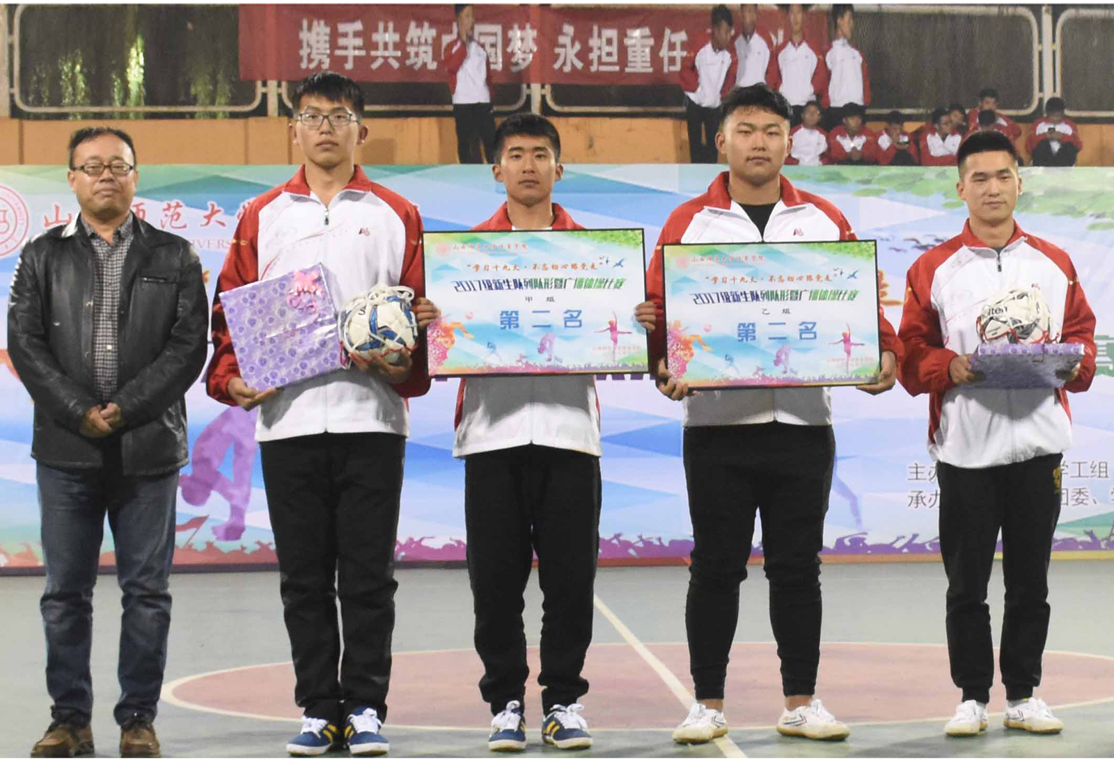 开幕式在庄严的国歌声中拉开序幕,公司党委书记李学刚为本次比赛致辞。本次比赛共有13个班级参赛,其中体育教育系和体育教育二系分为甲组;运动训练系、社会体育教育系、民族传统体育系分为乙组,大赛由冯瑞老师担任裁判长,张秀珍、王红芳、黄志高、金跃峰、刘剑、金涛老师担任裁判员。比赛过程中,同学们身着整洁统一的服装,迈着矫健的步伐,喊着嘹亮的口号,动作整齐划一、伸展优美规范。经过二个半小时的激烈角逐,体教1703班、1701班、1702班分别获得甲组前三名;民体1702班、民体1701班、运训1701班分别获得乙组前三名;陈曦、闫泽军获得优秀指挥员的称号。民族传统体育系员工还为本次比赛送上了精彩的表演。最后公司领导老师为获奖班级及优秀个人颁发了奖状及奖品。