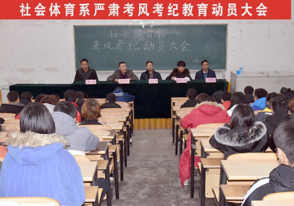 1月4日下午3点,社会体育系考风考纪教育大会在阶一教室顺利召开。VSport党委副书记孙学虎、系主任陈乐琴、系副主任杜治华、辅导员邓碾管与胡奇老师参加了本次会议。