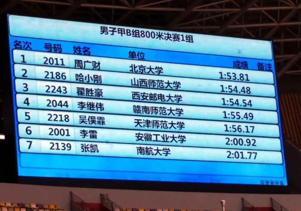 哈小刚同学获得男子甲B组800米银牌(左一)