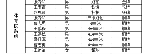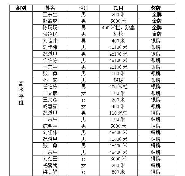附:公司参加省第21届大中员工田径运动会奖牌获得者统计