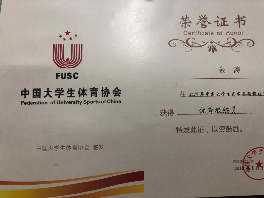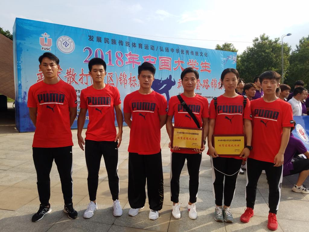 7月28日,2018中国老员工武术锦标赛在湖南工公司隆重举行。来自全国139所高校,149个代表队的1000余名运动员参加了自选拳术、自选器械、其他拳术、其它器械、太极拳、对练项目、太极推手7个大项的比赛,参加比赛高校和运动员数量均达历届之最。公司武术队共选派6名运动员参赛,其中,杜文东同学获得男子甲组软器械冠军、男子甲组华拳冠军;王大伟同学获得男子甲组软器械第三名;杨松林同学获得女子甲组太极拳第三名;付中鹏同学获得男子甲组八卦掌第三名、男子甲组长穗剑第五名;穆治光同学获得男子甲组少林拳第五名、男子甲组剑术第七名;裴超磊同学获得男子甲组南刀第八名。公司武术队荣获“体育道德风尚奖”,金涛老师荣获“优秀教练员”称号。(VSport武术队 供稿)