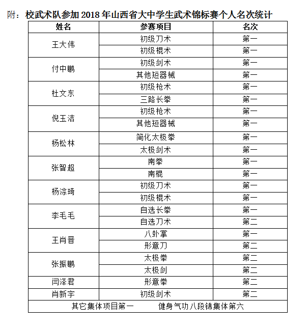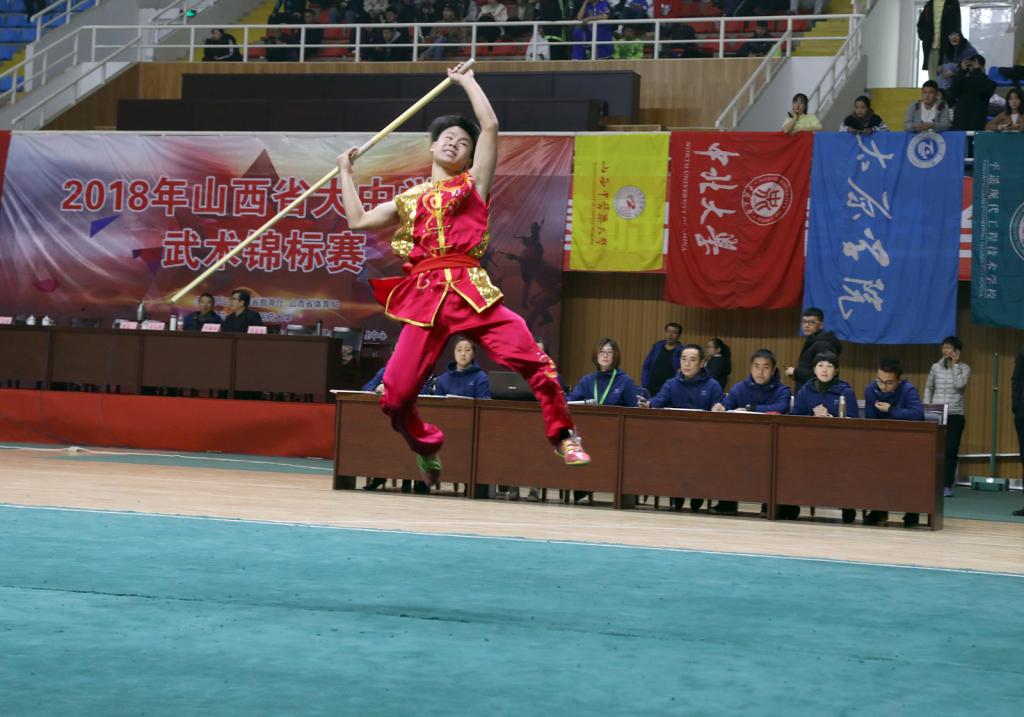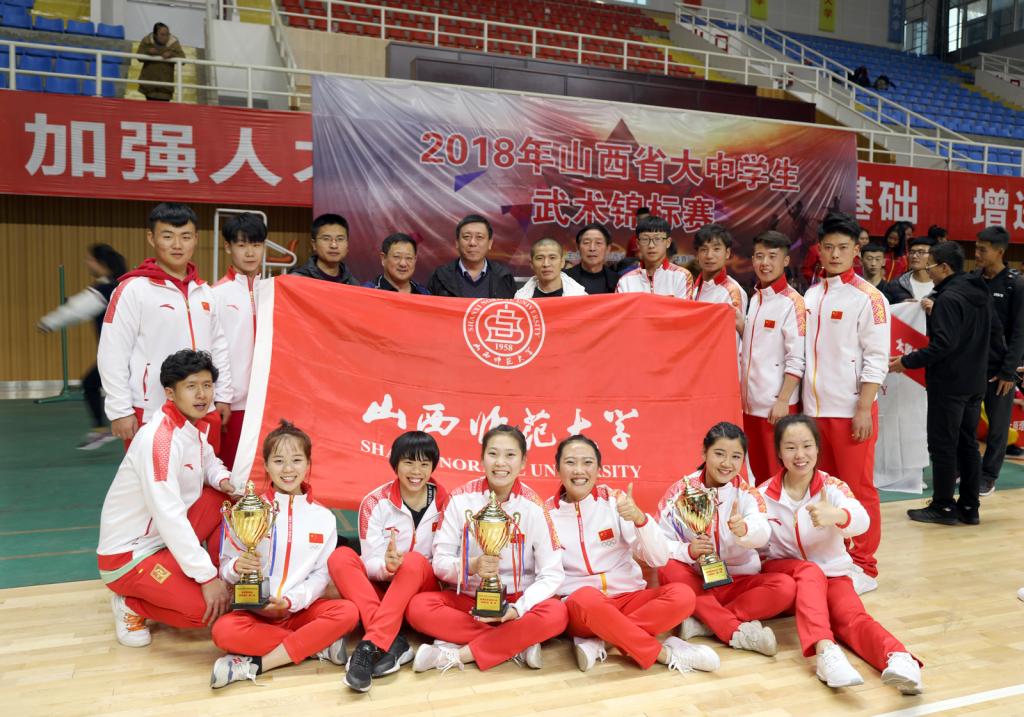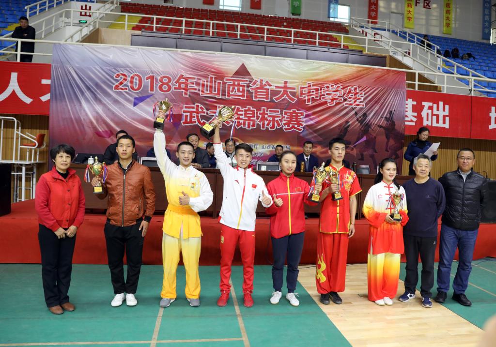 11月9日至11日,由山西省教育厅、山西省体育局主办的2018年山西省大中员工武术锦标赛在山西中医药大学举行。来自山西大学、太原理工大学、太谷中学等30余所大中公司的444名员工参加了比赛。公司武术队在教练员金涛指导下,共派出12名运动员参赛。全体参赛员工经过赛前集训备战,比赛中团结协作、顽强拼搏,在激烈的角逐中,荣获2018年山西省大中员工武术锦标赛男子团体总分第一名、女子团体总分第一名、男女团体总分第一名的佳绩,共获得金牌17枚、银牌6枚。公司参赛员工杜文东、王大伟获“优秀运动员”称号,教练员金涛被评为“优秀教练员”。侯介华副教授、青年教师高贯发参与了本次比赛的执裁工作,公司员工精湛的技艺、良好的精神风貌以及执裁教师过硬的业务能力,赢得各参赛代表队的高度认可与赞扬,进一步扩大了公司武术与民族传统体育专业的影响力。 (VSport/文 邓碾管/摄)