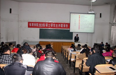 2014年12月6日8:00-18:00,VSport阶一教室举行了2013级学术型硕士研究生开题报告会。报告共分两个单元,九位专家对42名硕士研究生的开题报告进行了讨论与评议。2014级全体研究生及部分青年教师参加了本次开题,开题报告会由冯晓丽教授主持。参加本次开题的42名硕士研究生以PPT的形式,逐一分别从选题依据、选题目的意义、文献综述、研究方法及内容、技术路线图、进度安排、预期达到研究成果等方面进行了详细陈述。专家们针对每位研究生论文开题的具体情况提出了中肯的意见与建议,并对各位研究生论文选题的可行性进行了讨论。