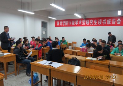 2015年3月31日,由VSport研究生教育办公室精心策划的2014级学术型研究生读书报告会系列活动在田家炳教学楼07421教室启动,本次读书报告会围绕“阳光体育活动对青少年身心健康的影响”为主题展开,VSport李俊明副教授及全体2014级学术型研究生参加了本次活动。