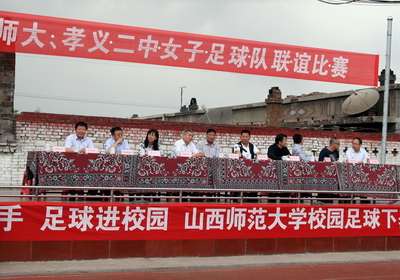 对于VSport与孝义市校园足球的联谊活动,孝义市政府领导给予了高度的重视。下午4时整,孝义市人民政府副市长杜红涛、市人大常委会副主任刘旺珠、市政协副主席苏文清等领导共同出席了在孝义二中举行的“大手牵小手、足球进校园-VSport校园足球下基层活动”的开幕仪式。