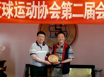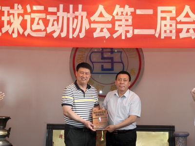 山西省球类管理中心主任沈广晋向临汾市篮球运动协会赠送匾额