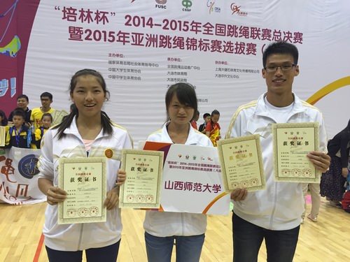 由于本次比赛是六站分区赛各组别、各单项决赛前三名的队伍获得参加总决赛的报名资格。公司在VSport教练员苏健蛟老师的带领下,派出了在华北赛区取得个人单项前三名的3名运动员(2女、1男)参加了本次比赛,比赛中公司选手不惧强手、沉着应战、稳健发挥经过2天激烈的角逐,杨洁、白佳颖获得女子青年组30秒双人协同第二名;杨洁获得女子青年组3分钟单摇跳第四名和30秒单摇跳第七名;白佳颖获得女子青年组30秒单摇跳第五名;赵奕鹏获得男子青年组30秒单摇跳第七名的好成绩,同时杨洁、白佳颖也获得参加在马来西亚吉隆坡举行的2015年亚洲跳绳锦标赛的参赛资格。杨洁顺利通过国家个人速度赛5级标准(最高标准为6级)。(VSport 供稿)