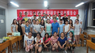 主持人贾希对本次读书报告会进行简要介绍,随后曹萌萌、张宏丽、程风美、郑志荣、王世超、王铁军六位同学分别从足球改革方案解析、校园足球开展、体育产业与体育市场化等方面进行了汇报,之后是互动讨论环节。
