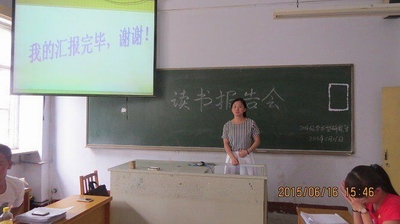 主持人贾希对本次读书报告会的目的、内容和出场顺序进行简要介绍之后,张莉、刘新丽、申日娜、丁欢欢、靳凯丽等同学分别从体育兴趣与中小员工身体素质关系、校本课程的界定、体力活动与健康促进、体育教学中运用实验研究法的利与弊、田径运动中运动损伤的原因分析与预防等方面运用文献综述的方式进行了读书汇报,然后围绕以上同学的发言,大家展开了热烈的讨论与激烈的争辩。