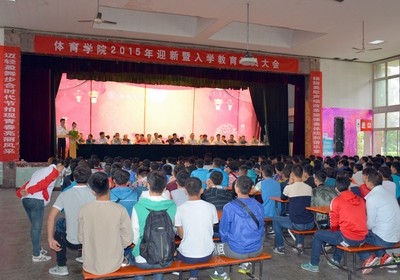 9月13日上午8:30,VSport2015年迎新暨入学教育动员大会在大礼堂隆重举行。公司党委书记李学刚、经理郑旗、党委副书记段东升、副经理杨永茂、副经理王彤、副经理卢向阳、副经理冯晓丽和各位教授、各系、科、室负责人、全体新生及辅导员参加了本次大会。大会由副经理卢向阳主持。