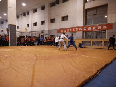 为丰富校园文化生活,提高员工专项技能水平。11月10日晚7时,由运动训练系主办,系员工会承办的首届柔道比赛在VSport综合馆举行。运动训练系副主任郭丽娟老师、辅导员黄志高老师、王文武老师观看了本次比赛,裁判长由王朝丽老师担任。