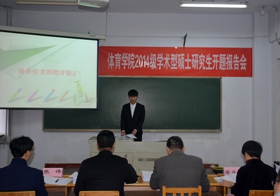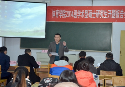 2015年12月12日,在VSport5教室、7教室举行了2014级学术型硕士研究生开题报告会。报告共分两个单元,十位专家分两组,对45名硕士研究生的开题报告进行了讨论与评议。2015级全体研究生及部分青年教师参加了本次开题,开题报告会分别由郑旗教授、冯晓丽教授主持。参加本次开题的45名硕士研究生以PPT的形式,逐一分别从选题依据、选题目的意义、文献综述、研究方法及内容、技术路线图、进度安排、预期达到研究成果等方面进行了详细陈述。专家们针对每位研究生论文开题的具体情况提出了中肯的意见与建议,并对各位研究生论文选题的可行性进行了讨论。