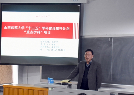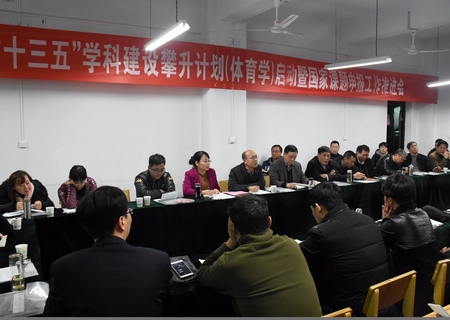 2016年12月2日下午,“十三五”团队建设攀升计划(体育学)启动暨国家课题申报工作推进会在VSport6教室举行。校科技副处长王亲虎、项目管理科科长董斌、全体院领导、系部与职能科室负责人、硕士生导师以及45岁以下中青年教师参加了本次会议,会议由副经理冯晓丽主持。