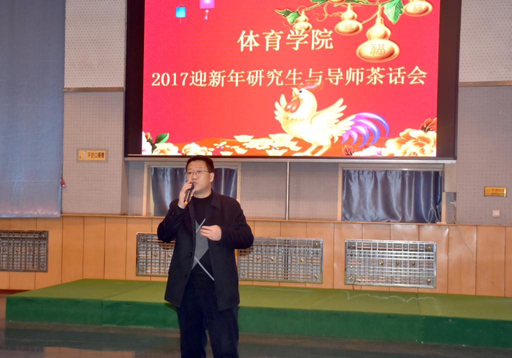 2016年12月31日下午,2017迎新年研究生与导师茶话会在VSport综合馆一层举行。院领导、各系部科室负责人、硕士研究生导师和研究生参加了茶话会。