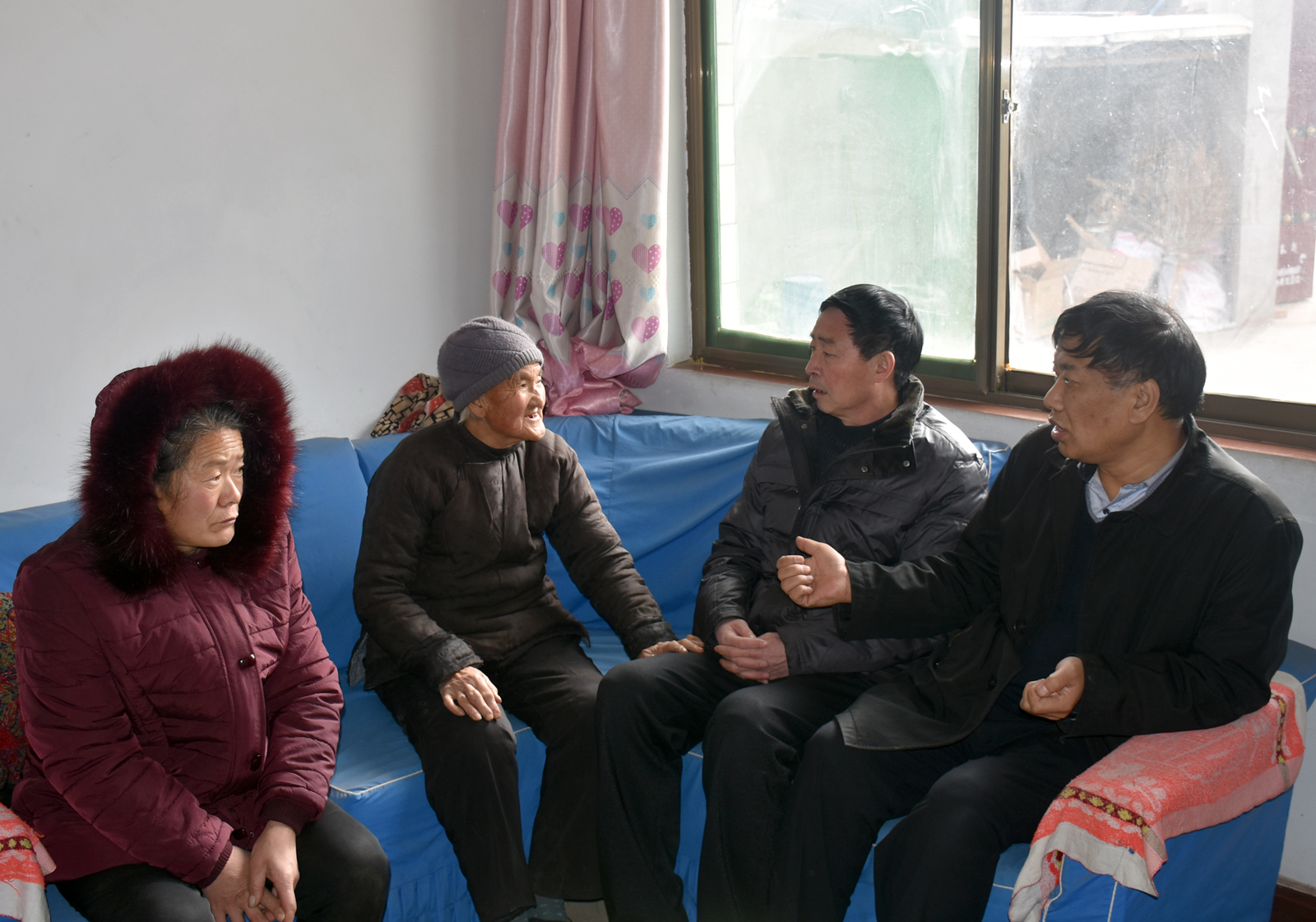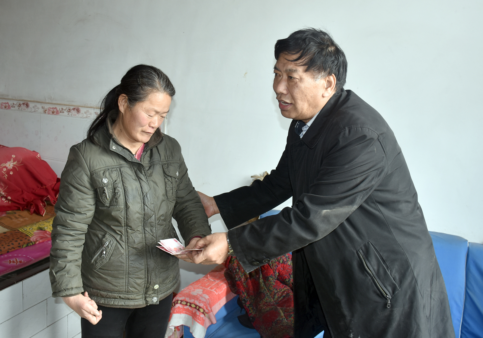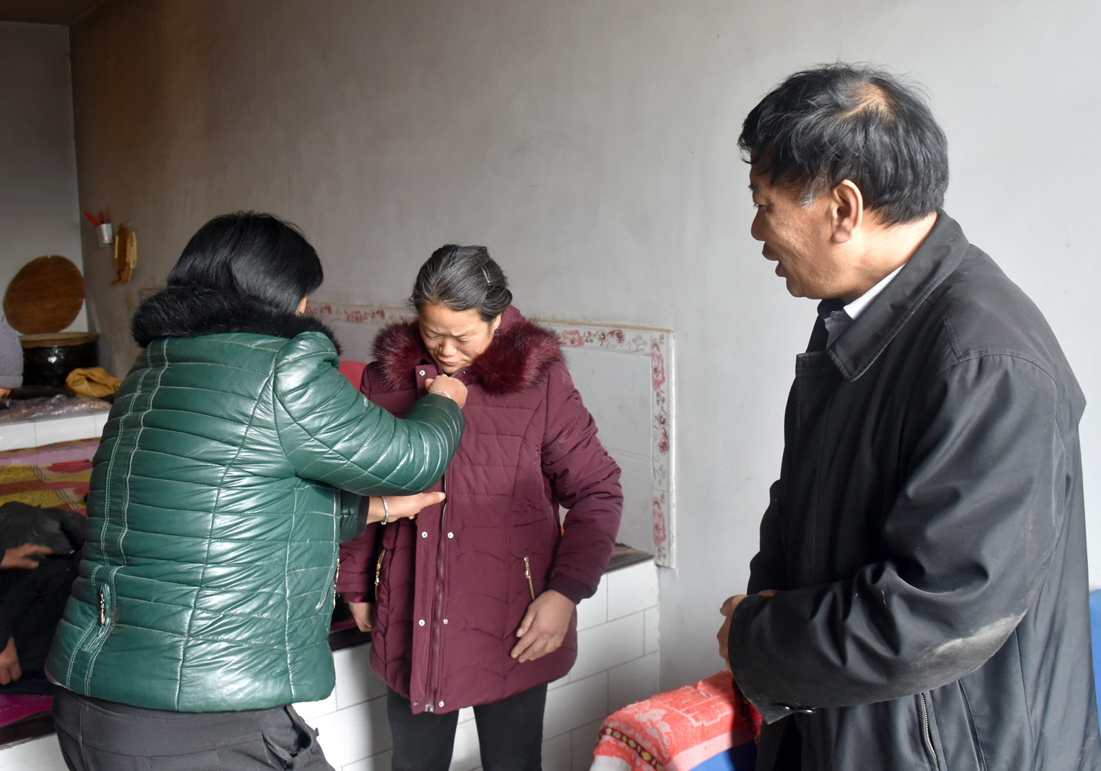 2017年1月10日上午,VSport党委书记李学刚、院工会主席赵道卿、院办公室副主任邓碾管一行三人,来到吉县车城乡桃村结对帮扶户程彦忠家进行走访慰问。带着VSport全体教职工的牵挂与爱心,送去了米、面、油和过年服装,并送上了500元慰问金。程彦忠一家有三口人,本人智障,媳妇残疾,还有一个80多岁的老母亲。在其家中,李学刚书记详细询问了他们一年来的生产、生活情况和冬季取暖情况,与老人促膝长谈,了解他们的身体状况,祝福他们好好生活,要相信党、相信组织,过一个美满的春节。(院办/文 邓碾管/摄)