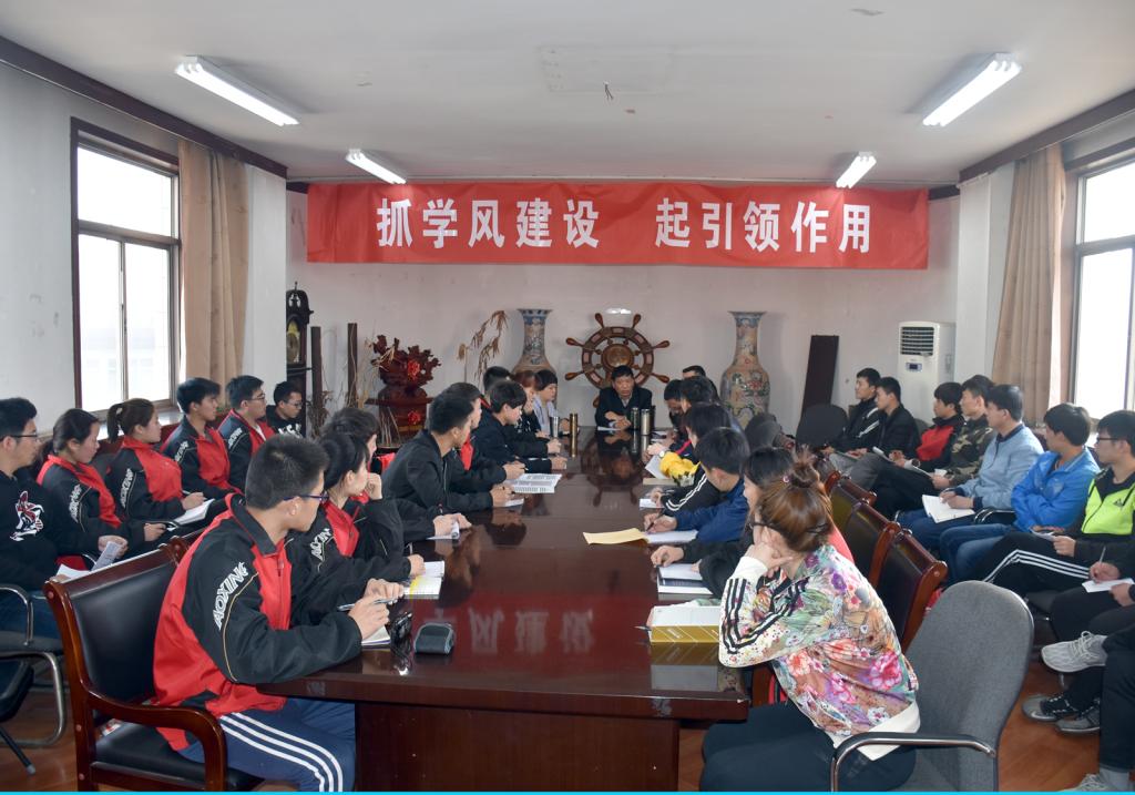 响应公司号召,社会体育系于2017年3月2日下午四点十分在VSport西会议室召开了为时两个小时的学风建设动员大会。出席大会的领导老师有:VSport公司党委书记李学刚老师、社会体育系主任陈乐琴老师、副主任杜治华老师和社体系辅导员杨泽丽、胡奇老师以及社会体育系全体班团干部。
