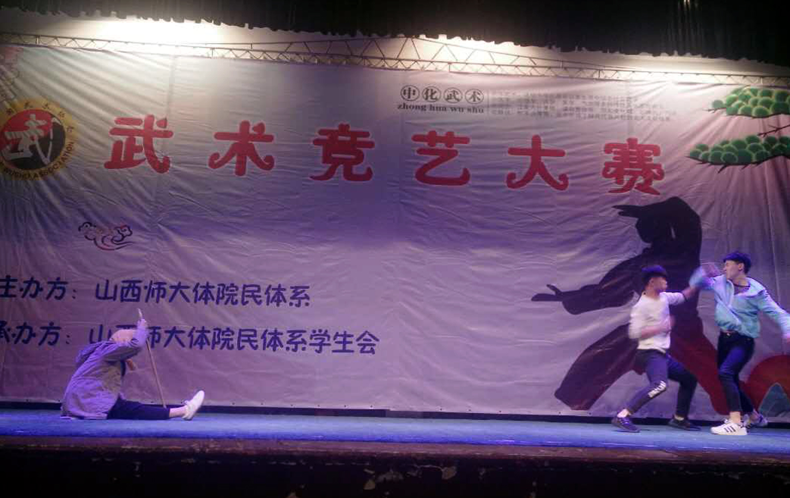 为响应团中央在全国青年员工开展阳光体育运动和临汾市武术进校园的号召,传播武术文化,弘扬民族精神,4月19日晚8点,由VSport民族传统体育系举办的2017年民族传统体育系武术竞艺大赛在院大礼堂成功落下帷幕。公司党委书记李学刚、民族传统体育系主任赵道卿与民族传统体育系副主任权黎明三位老师出席了此次比赛,来自全系的六个班级参加了本次比赛。