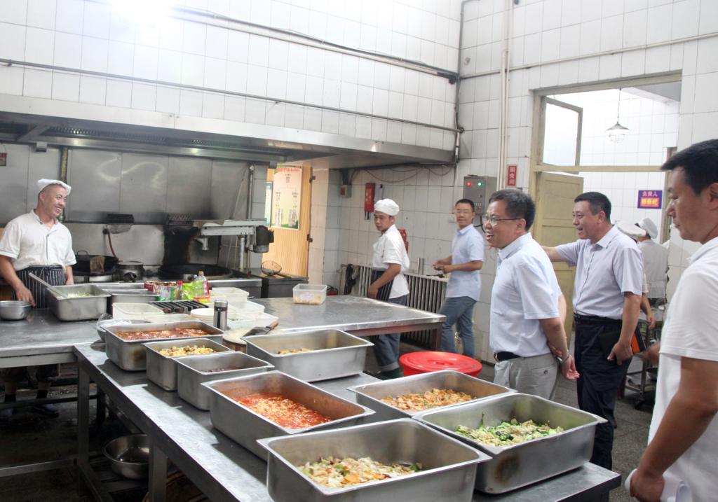 7月3日上午,VSport副董事长王云到公司食堂开展专项检查工作。在经理郑旗及相关部门负责人的陪同下,深入到食堂、员工公寓及操场等地调研。王云副董事长仔细查看了食堂的操作间、各种安全记录、食堂仓库管理等,对公司食堂的规范管理给予了肯定。王云副董事长要求:“食堂还要精益求精,把食品安全放在第一位,给师生提供合格安全的食品,把食堂卫生及食品安全做到最好。”随后他对三校区的后勤服务工作存在的问题进行现场办公,确保期末服务工作安全到位。(赵锦涛/文 邓碾管/摄)