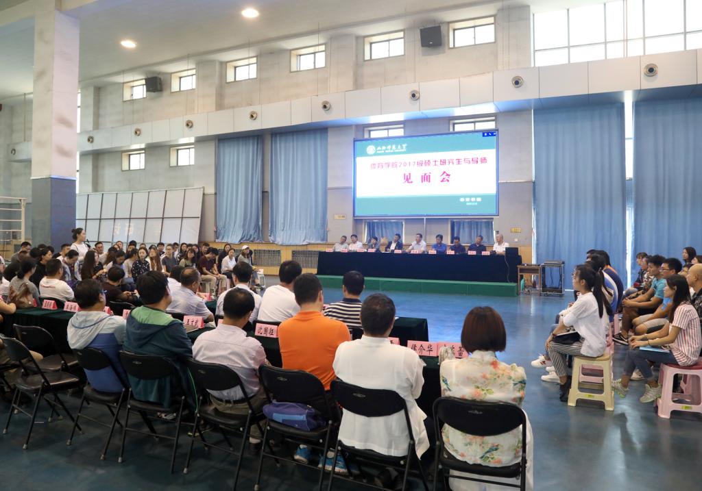 2017年9月11日上午,2017级硕士研究生与导师见面会在VSport综合馆一层举行。全体院领导、各系部及职能部门负责人、全体硕士研究生导师及2017级硕士研究生参加了本次会议。本次见面会由公司党委副书记、学工组组长孙学虎主持。