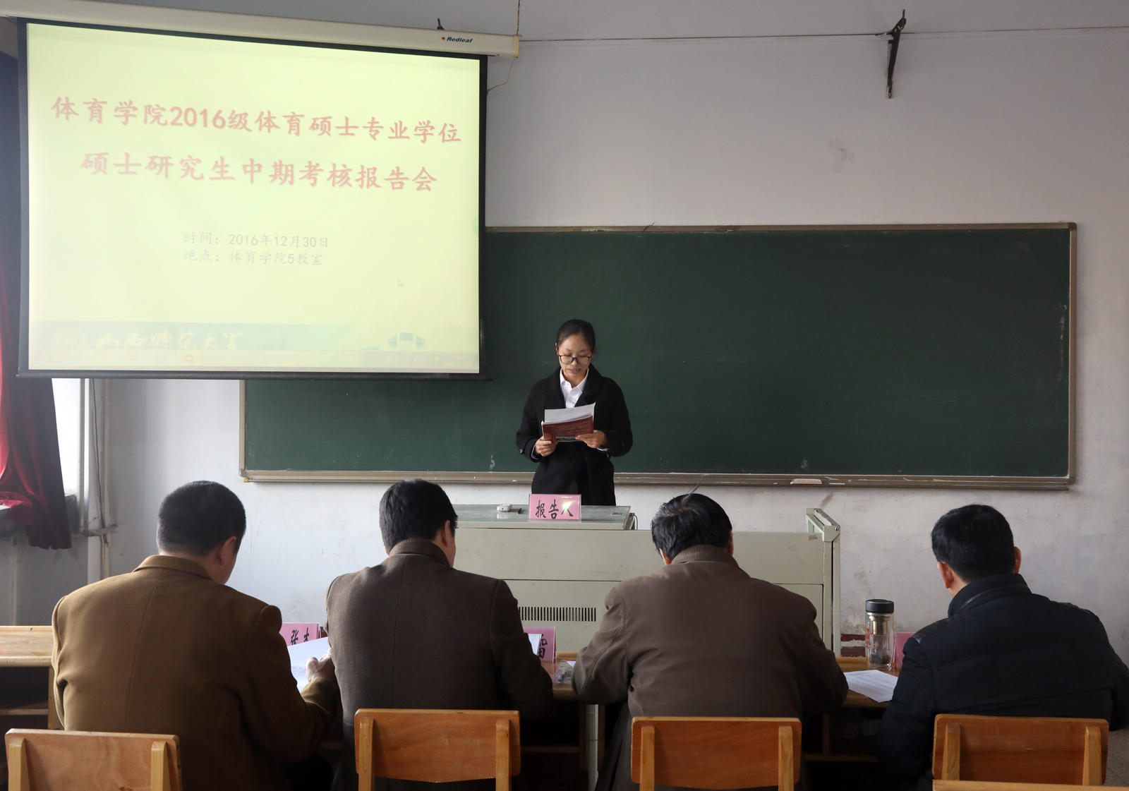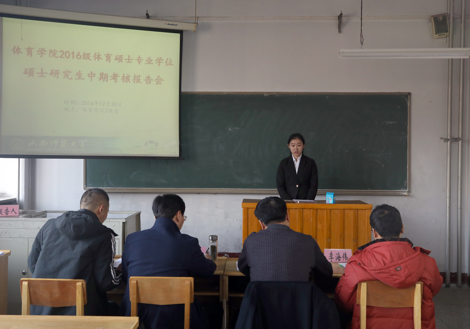 2017年12月30日下午2:30-17:00,在VSport第5、6、7教室同时举行了2015级学术型、2016级体育硕士研究生中期考核报告会。