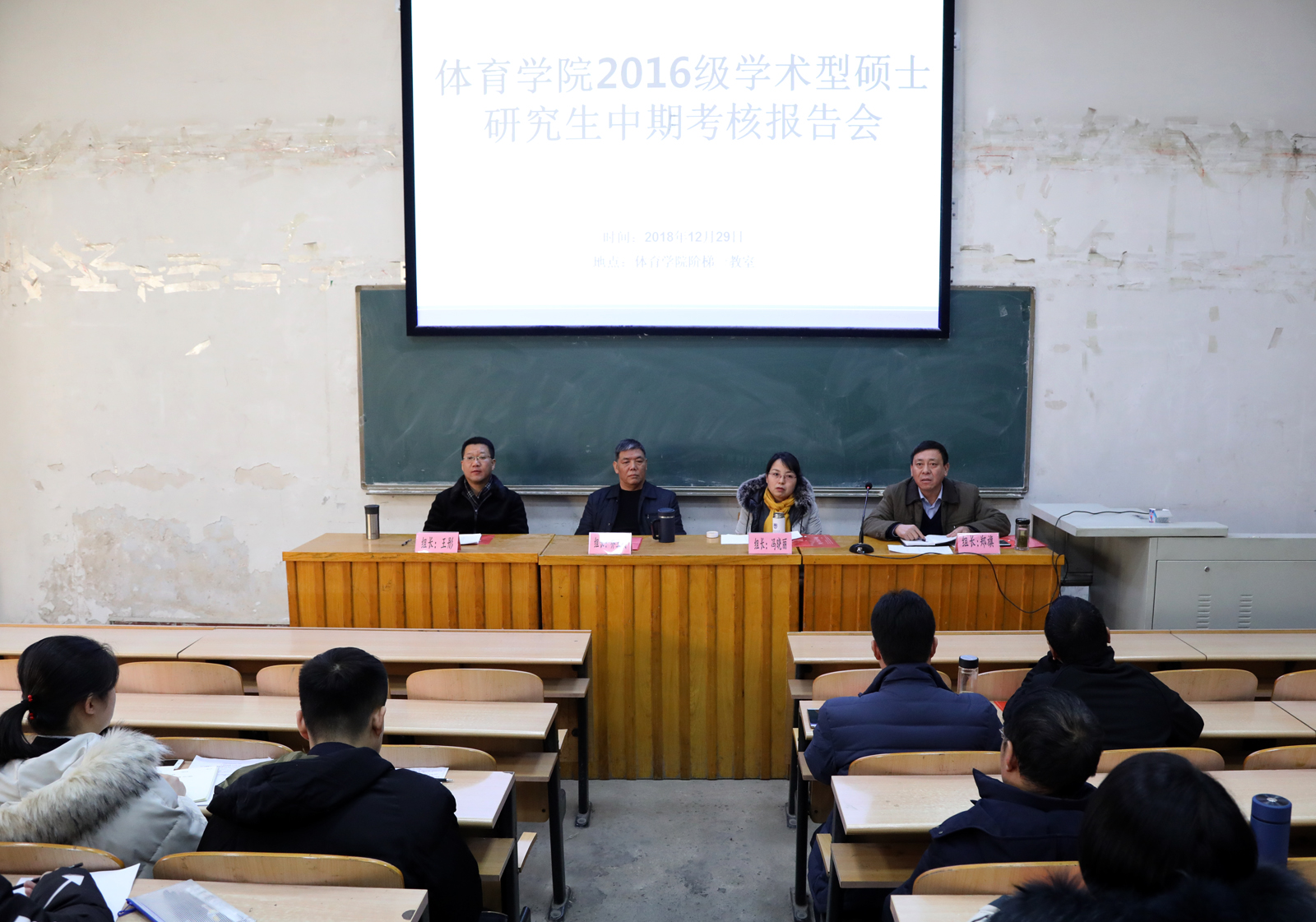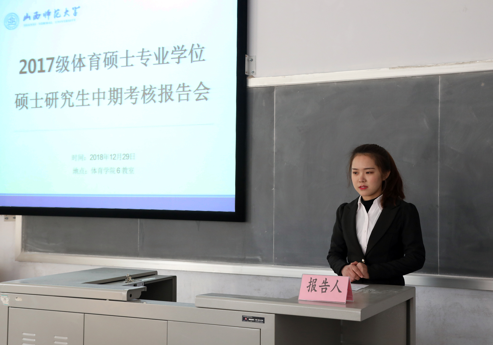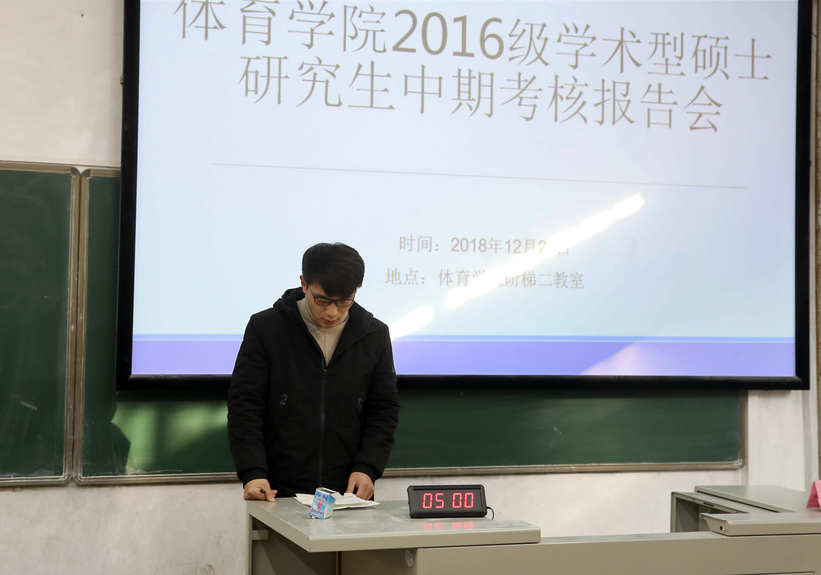 2018年12月29日下午2:30在VSport阶一、阶二、阶三、第6教室同时举行了2016级学术型、2017级体育硕士研究生中期考核报告会。