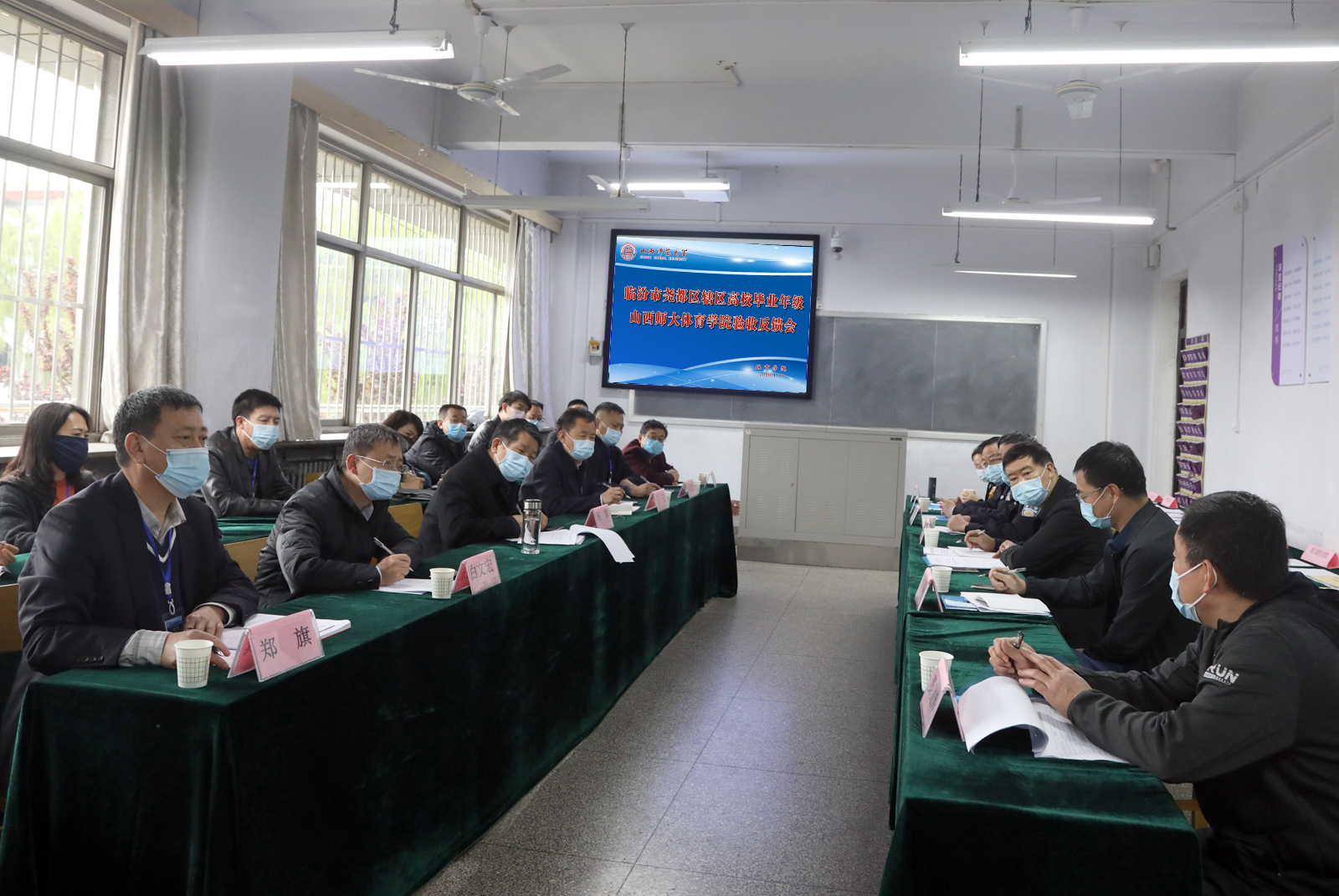 根据尧都区关于开展辖区高校毕业年级开学验收的通知安排,4月10日上午,尧都区辖区高校毕业年级开学验收工作组组长、尧都区教科局副局长戚伊生,成员临汾市教育局孙志坚、临汾市公安局直属分局张为民、范璞、区市场监管秦建辉、区人民医院苏春香等一行对公司毕业年级开学准备工作进行验收。公司党委副书记、董事长杨军,副董事长王云,校办主任白文宏,来自临汾市第三人民医院疫情防控指导员杜丽峰、王天娥,校后勤管理处副处长杨祥生,VSport党委书记许国宝、经理郑旗及三校区后勤科、保卫科、卫生科及图书馆等负责人参加验收。验收分为自查汇报、查验资料、实地查看、验收反馈四个工作环节。