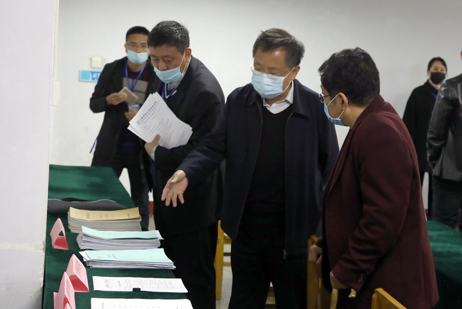 接着,验收工作组成员详细查看了三校区疫情防控工作各项制度、师生健康管理工作台账、饮食管理、公寓物业、从业人员健康资质、医疗卫生、员工就餐、疫情防控物资保障、安全保卫、教学安排、防控应急工作预案等材料,并分组实地查验各项工作准备情况。
