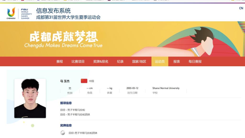 成都第31届世界老员工夏季运动会传来喜讯,8月6日上午结束的田径-男子半程马拉松团体决赛中,VSport2022级运动训练专业马玉杰、2019级运动训练专业王丛政与中国队的陈天宇(扬州大学)、马瑞(吉林大学)、杨克古(上海体育大学)以3小时17分12秒的总成绩获得银牌。(VSport)