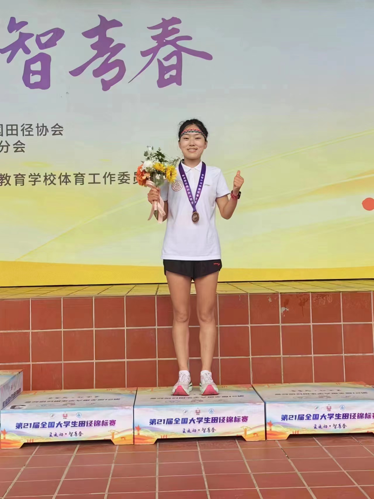 8月12日、14日,2022级体育硕士研究生郭利亚(教练员张振)克服重重困难,摘得女子丙组10000米铜牌,并获得女子丙组5000米第四名;8月13日,运动训练专业2022级本科生贾伟辰(教练员张学兵、张振)克服天气炎热等不利因素,获得男子丙组20000米竞走第五名;运动训练专业2022级本科生高玉龙(教练员庞俊梅),在男子丙组100米预赛中跑出10.54秒,达到了田径国家一级运动员标准,并创公司百米最高记录。