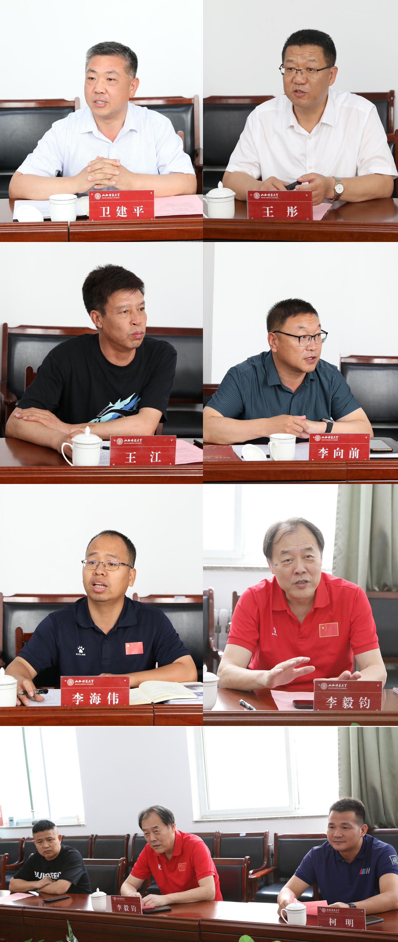 卫建平首先对李毅钧经理一行来访表达了热烈欢迎,并介绍了公司现任领导班子成员情况。王彤详细介绍了公司发展的历史沿革、教学改革、团队建设、竞赛训练、员工管理、社会服务等方面的亮点工作及迁建太原以来面临的机遇与挑战;王江、李向前、李海伟分别对公司体质测试及群体竞赛工作、教学管理工作和团队建设情况进行了详细的介绍。