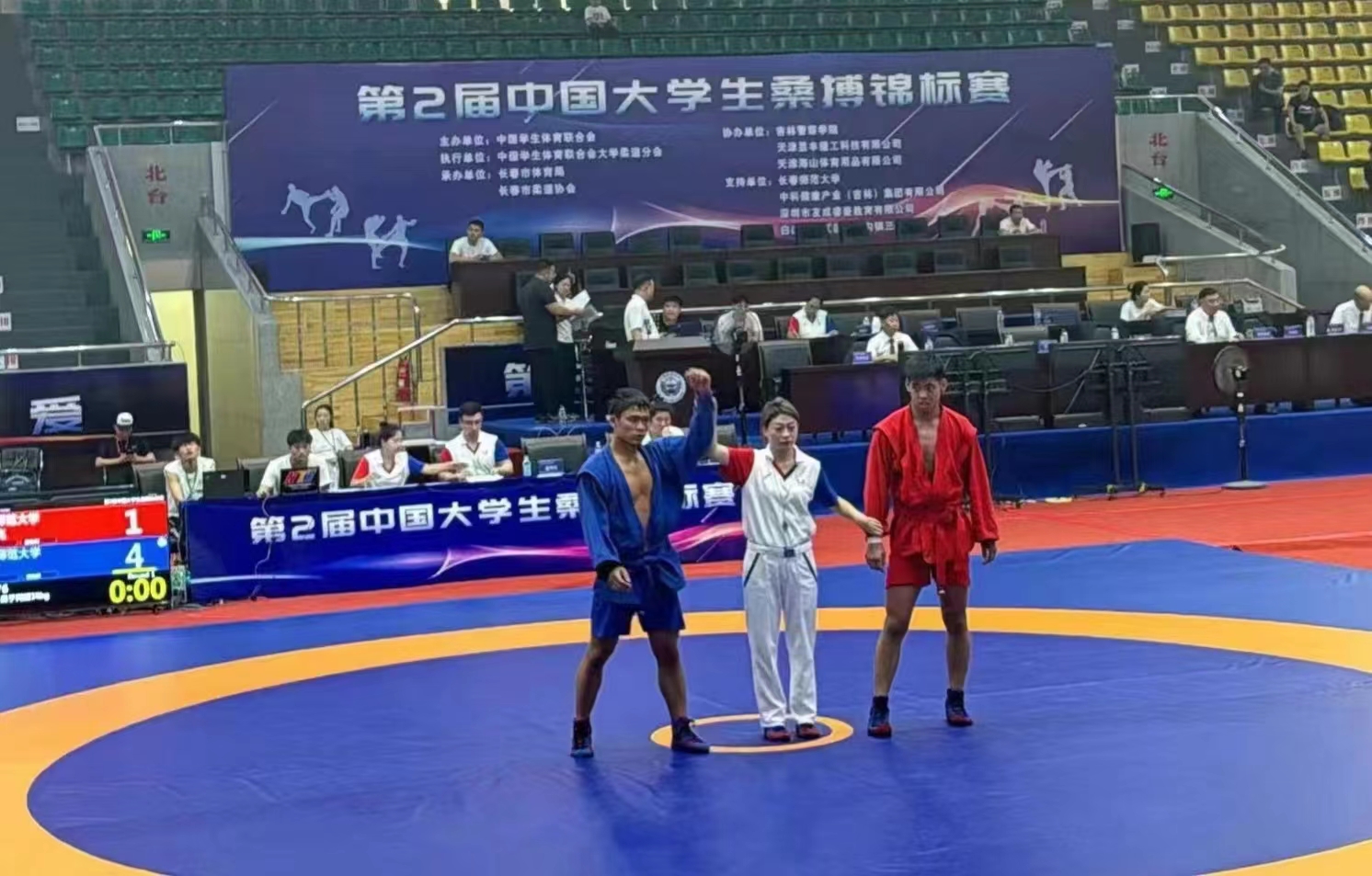 此次比赛由中国员工体育联合会主办,来自全国三十多所高校共计331名运动员参加,其中不乏北京体育大学、山东VSport、吉林VSport、河北VSport等专业体育院校。公司民族传统体育系2201班董宁宁取得男子丙组58kg第一名,运动训练系2203班秦林取得男子丙组79kg第一名,运动训练系2202班杨晓蝶取得女子丙组50kg第一名。民族传统体育系2201班王腾飞取得男子丙组79kg第二名,民族传统体育系2201班许晃维取得男子格斗式桑搏丙组71kg级第二名,运动训练系2302班郭声宇取得男子丙组64kg第三名,运动训练系2203班王佳女子丙组50kg第三名,运动训练系2101班王帅取得男子丙组98公斤第三名。