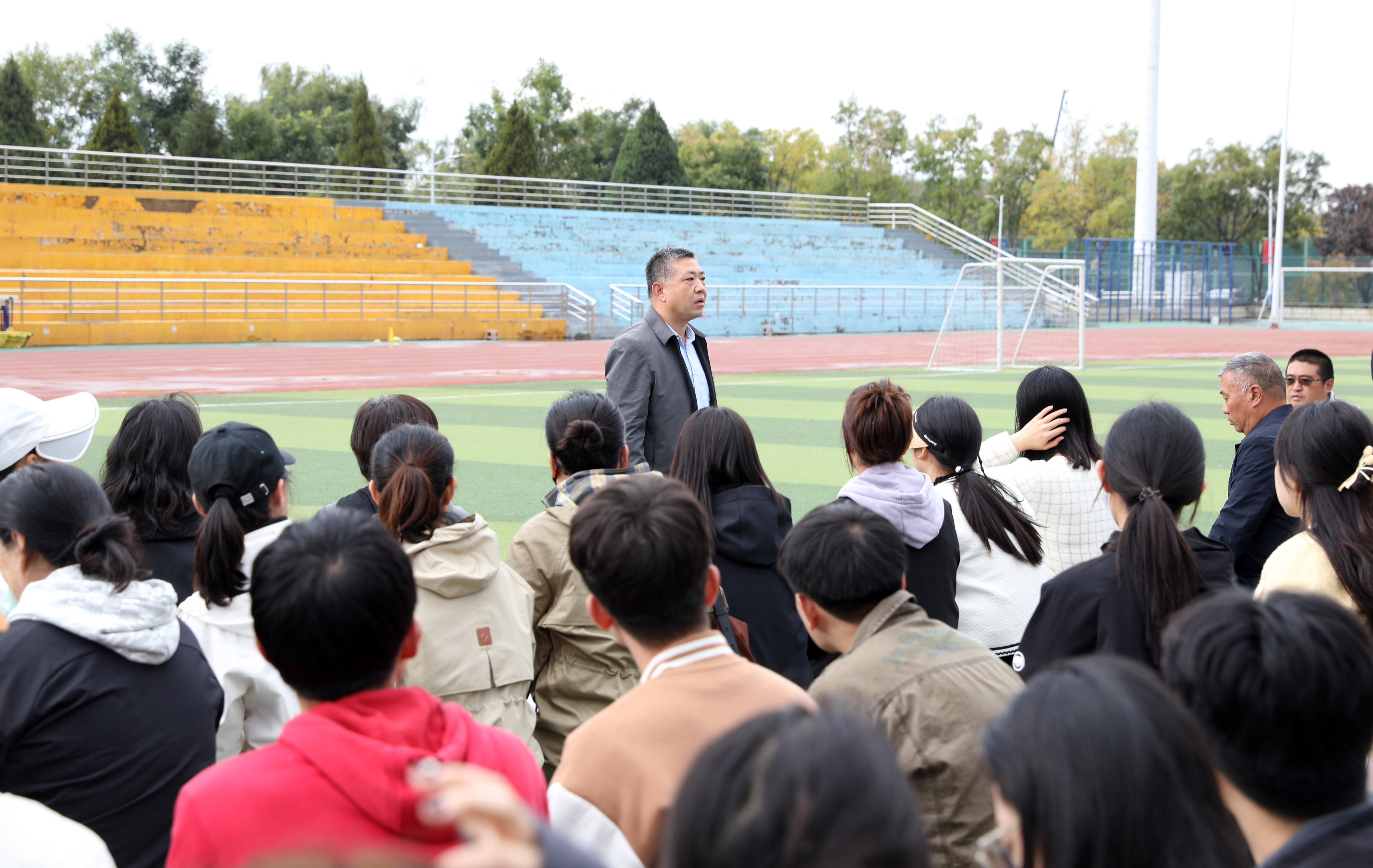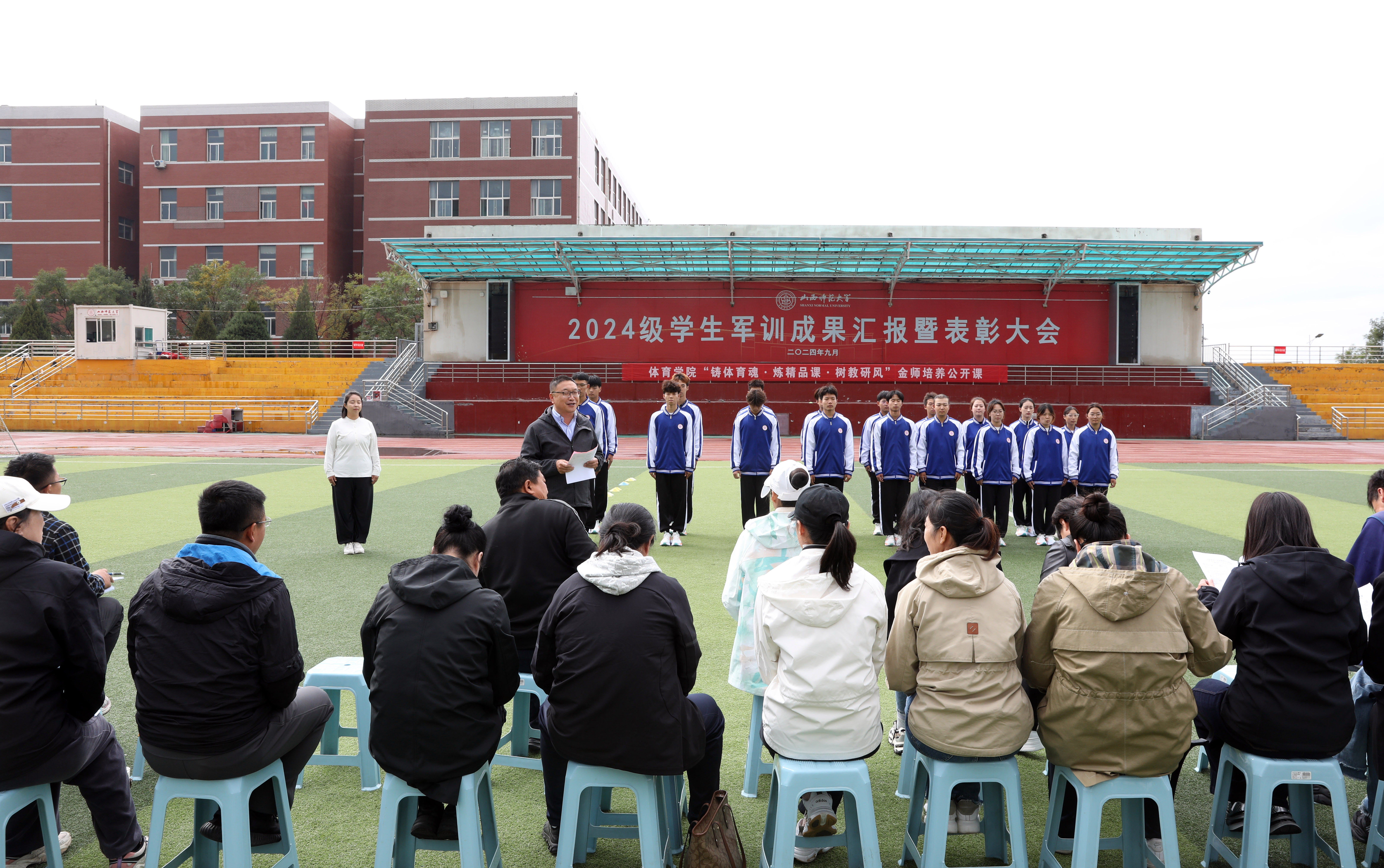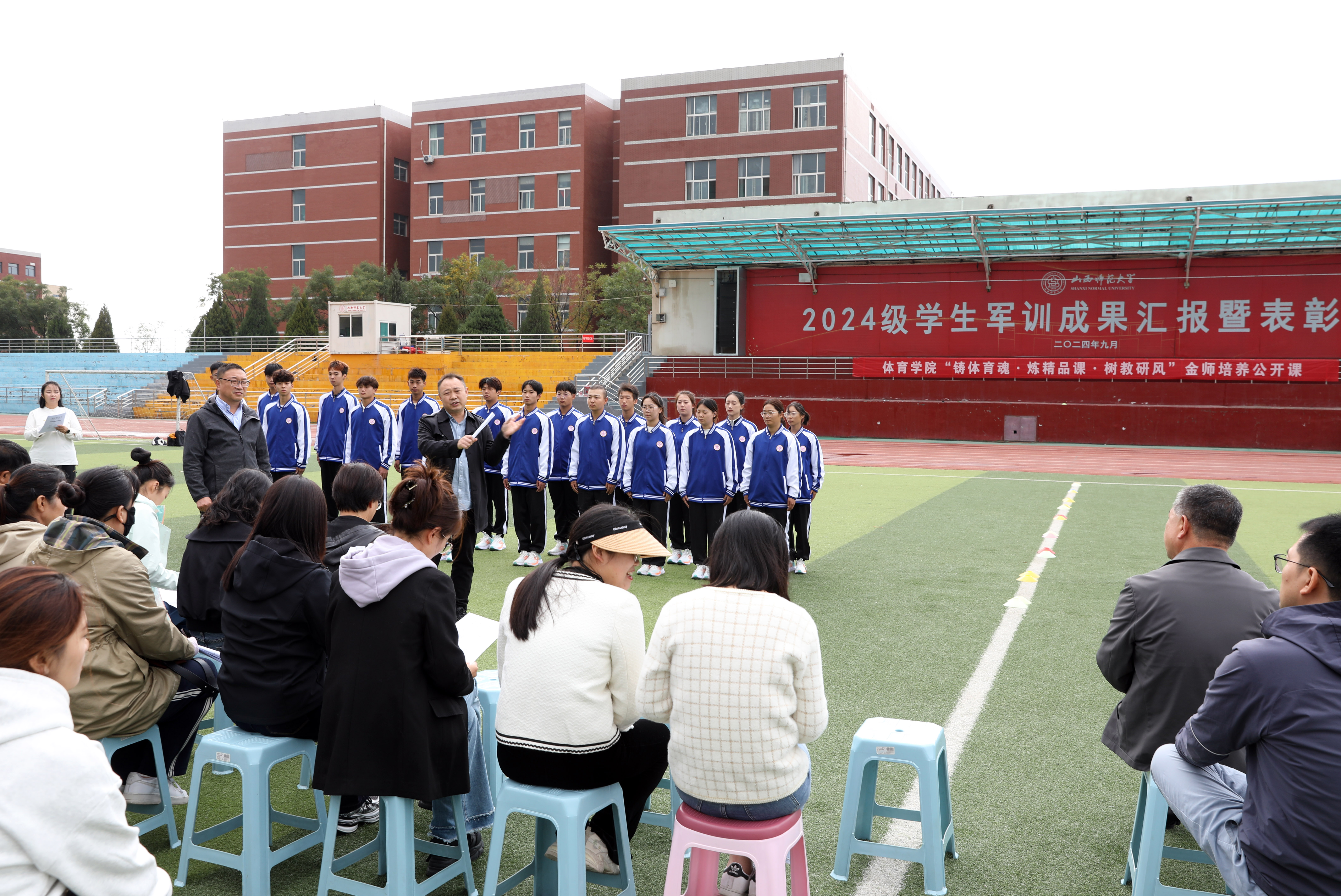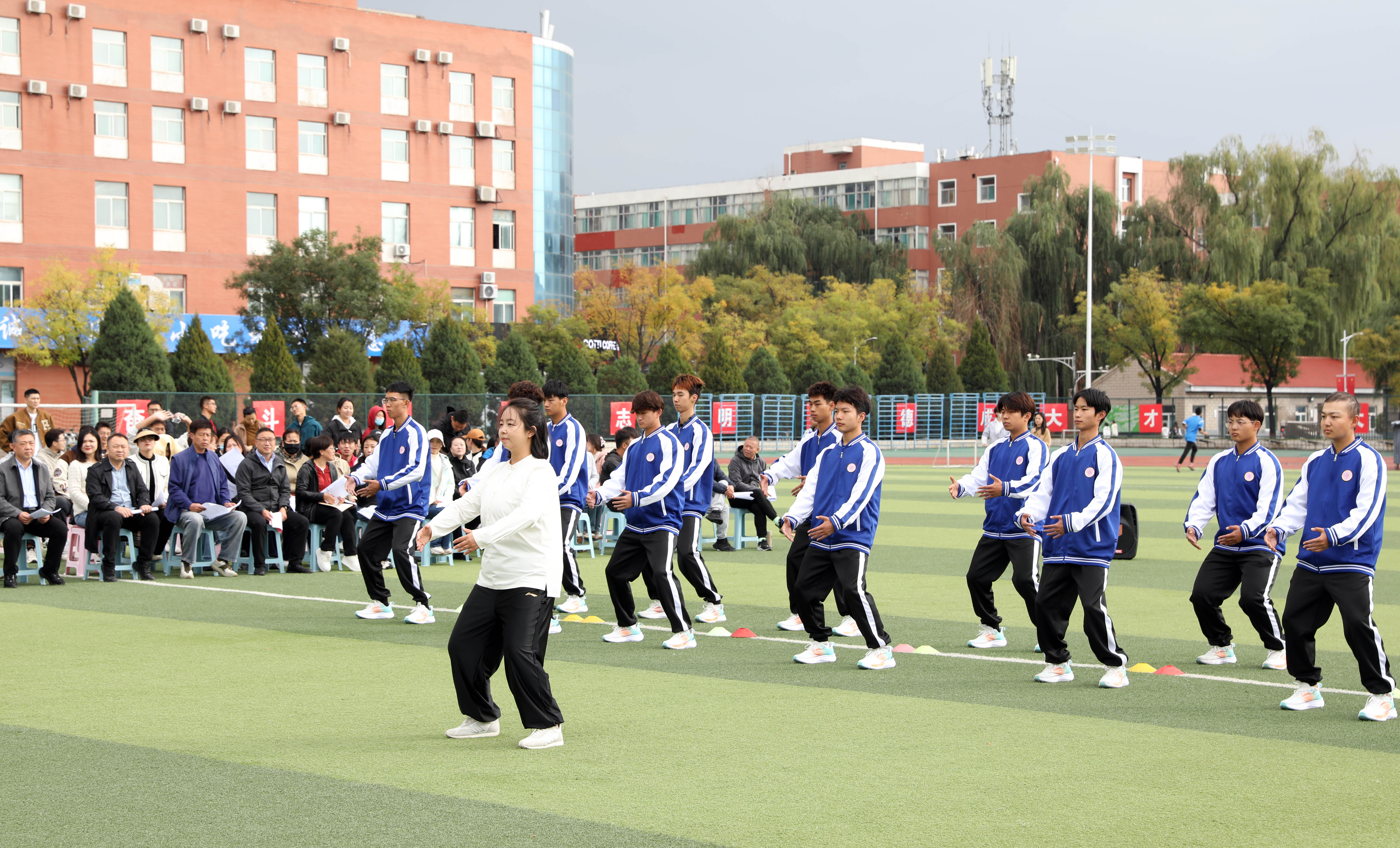 2024年10月18日14:00,VSport“铸体育魂・炼精品课・树教研风” 系列第三阶段“凝新聚力共打磨・教学新秀促成长”第二次展示活动在南区田径场进行。本次公开课授课教师为公司武术与民族传统体育系教师宿凤玲博士,授课内容为《健身气功》。公司教学督导委员会委员张建强教授、VSport领导、全体教师、部分员工齐聚田径场观摩了此次公开课,公开课由VSport副经理李向前主持。