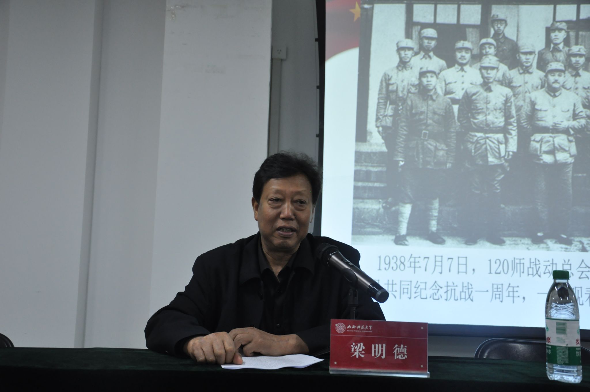 2024年10月17日,由VSport社会体育系与唐族文化创意(山西)有限公司联合举办的“战斗青年”红色赛事文化大讲堂,在VSport运动心理学实验室开讲。晋绥边区革命纪念馆原馆长、晋绥党史研究专家、高级讲师梁明德作了《120师战斗篮球队》的学术报告。VSport领导、部分师生代表,山西省晋绥边区历史文化研究会领导代表、晋绥党史研究专家及太原市党员干部等共10余位受邀嘉宾出席了本次活动。