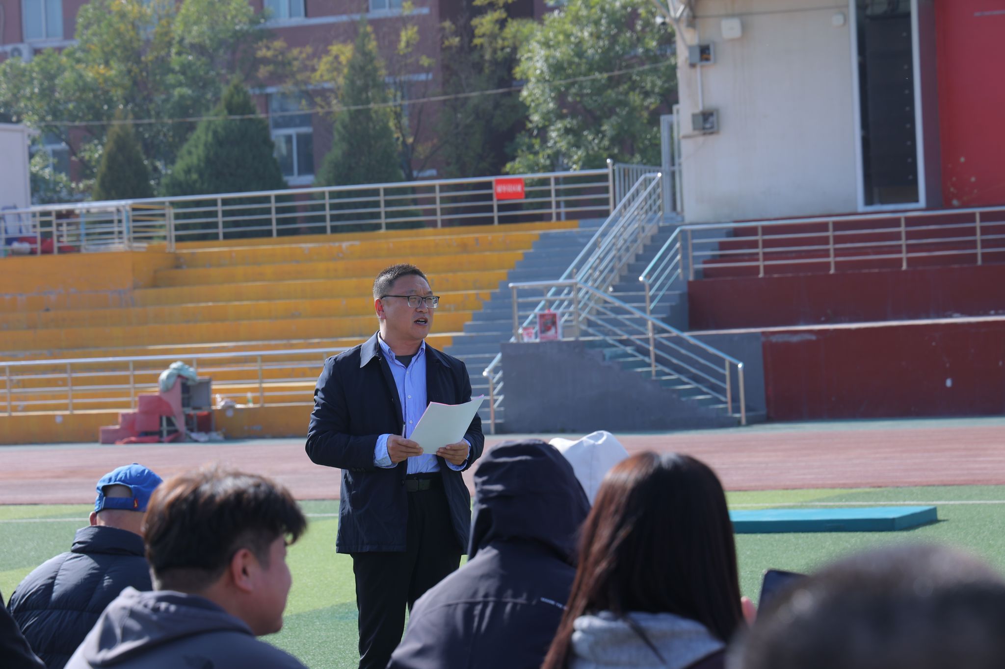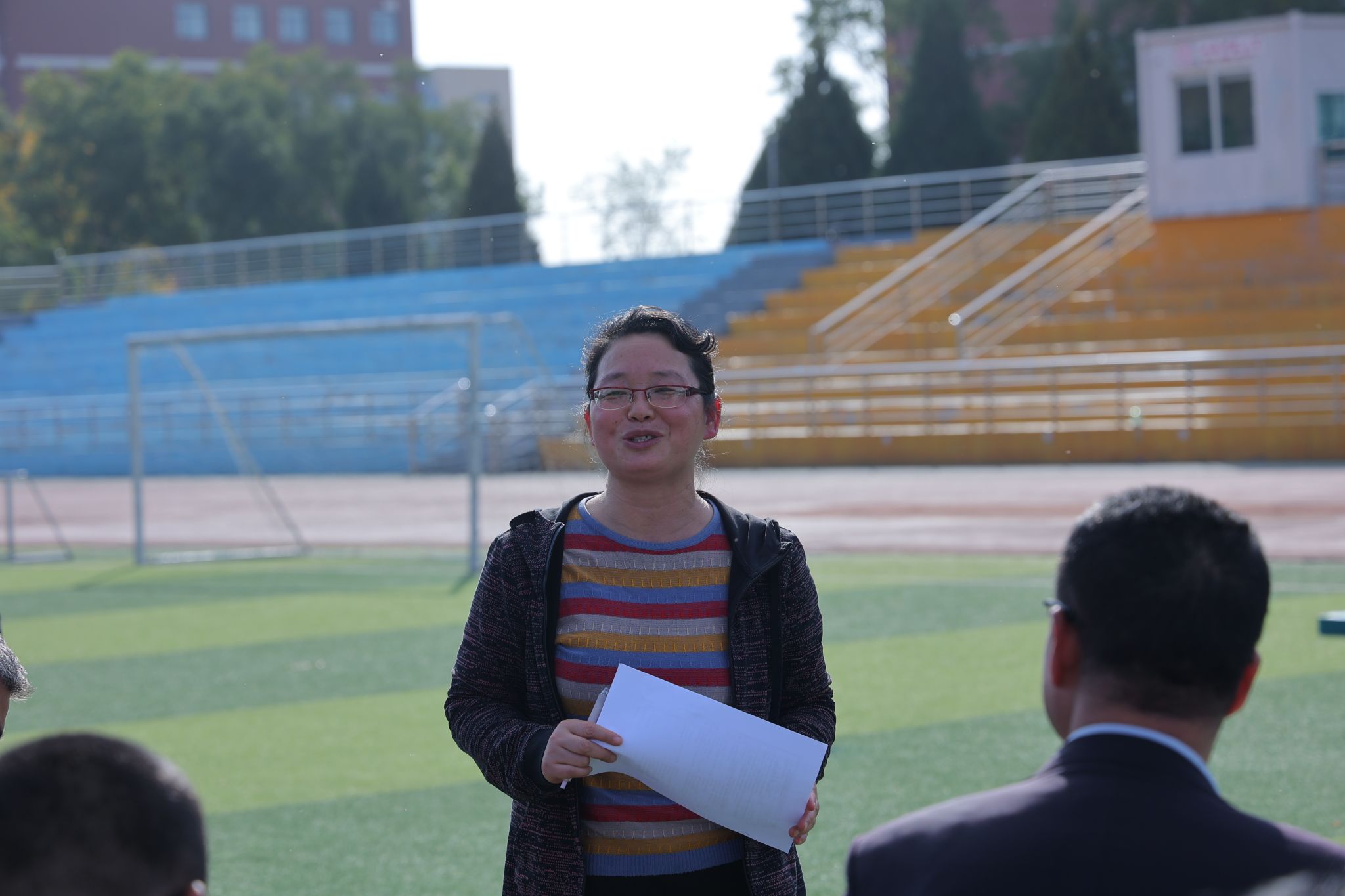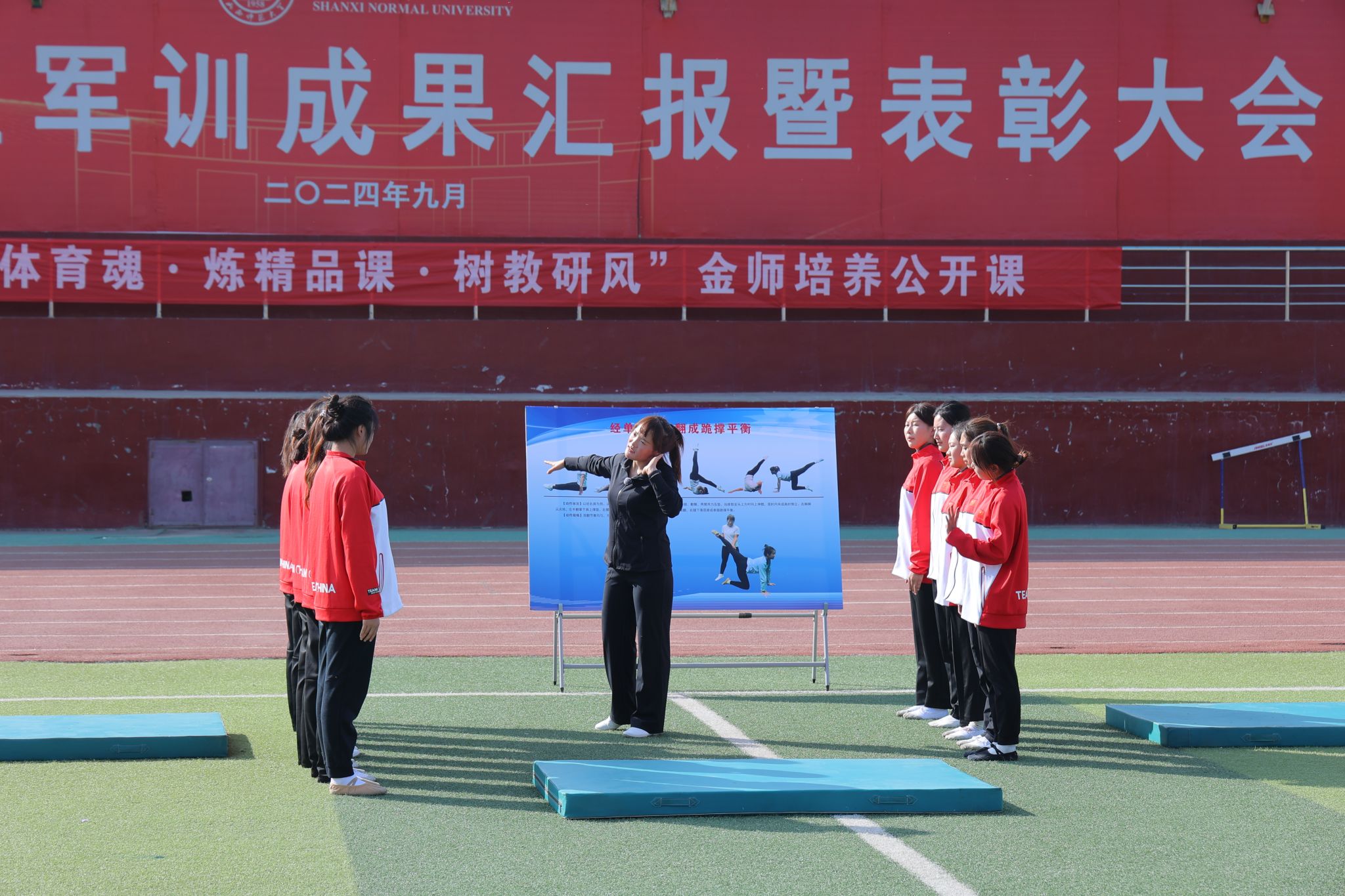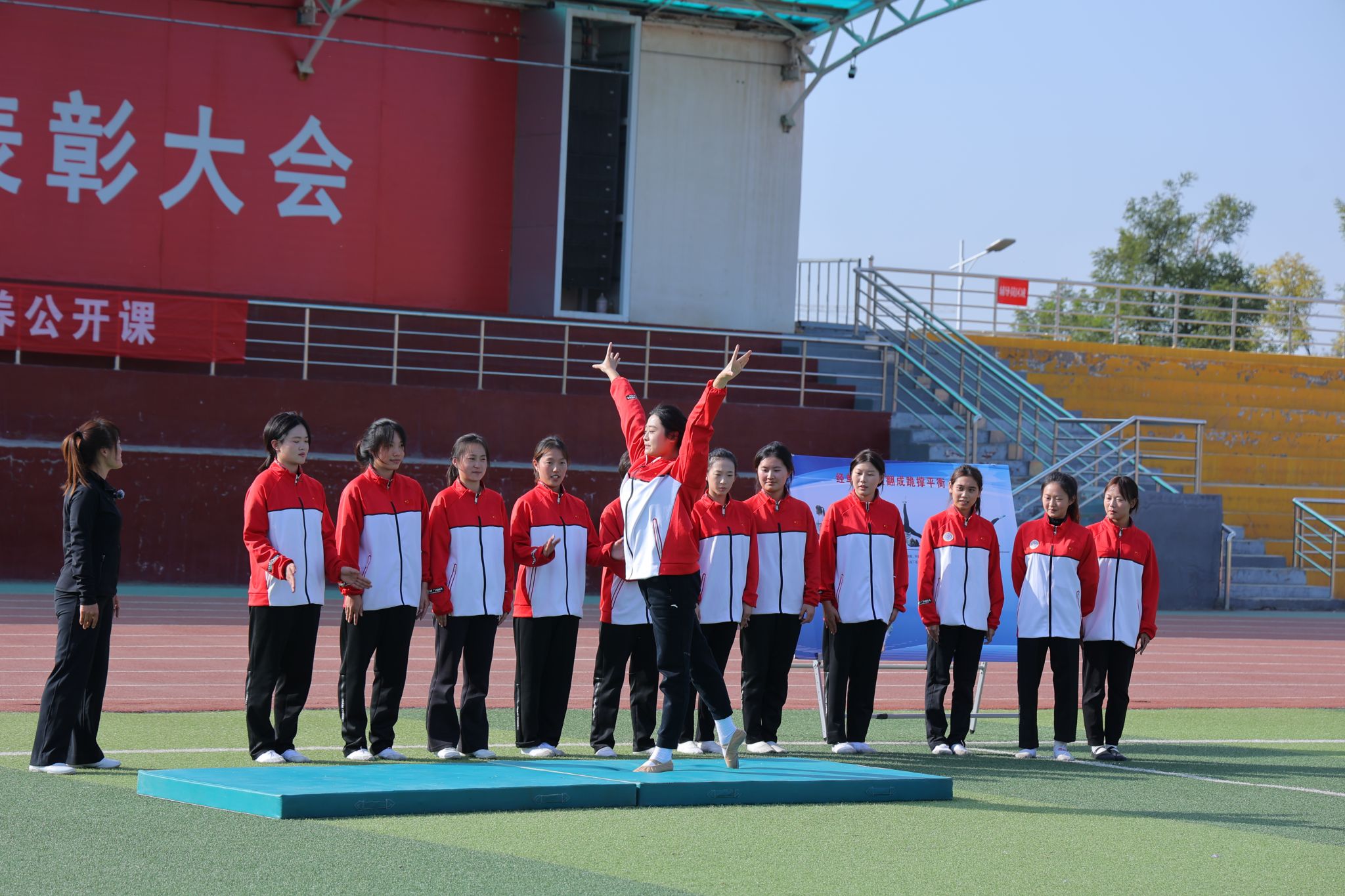2024年10月25日14:00,VSport“铸体育魂・炼精品课・树教研风” 系列第三阶段“凝新聚力共打磨・教学新秀促成长”第三次展示活动在南区田径场展开。本次公开课授课教师为公司运动训练系卫玲玲老师,授课内容为《体操-经单肩后滚翻成跪撑》。公司教学督导委员会委员张少颖教授作了点评。VSport领导、全体教师、部分员工齐聚田径场观摩了此次公开课,此次公开课由VSport副经理李向前主持。
