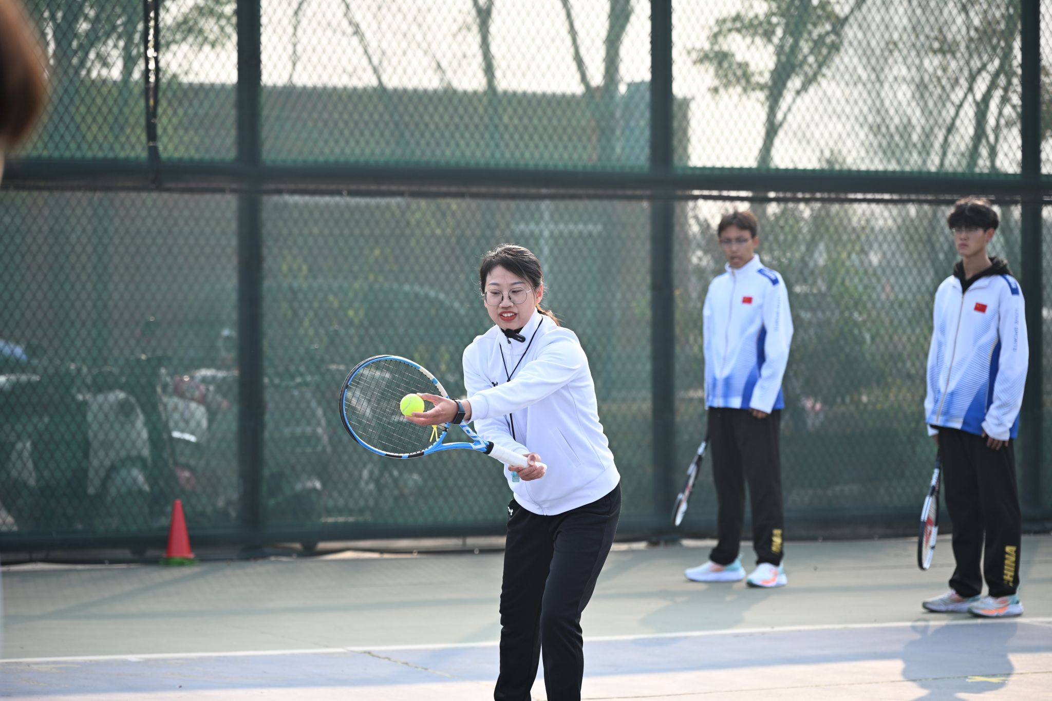 2024年11月8日14:00,VSport“铸体育魂・炼精品课・树教研风” 系列第三阶段“凝新聚力共打磨・教学新秀促成长”第五次展示活动在南区网球场展开。本次公开课授课教师为公司公共体育部刘朋溪老师,授课内容为《网球-正手击球技术》。公司教学督导委员会委员、马克思主义公司赵跃先教授作了点评,北京信息科技大学体育部教师、VSport领导、全体教师、部分员工齐聚现场观摩了此次公开课。此次公开课由VSport副经理李向前主持。