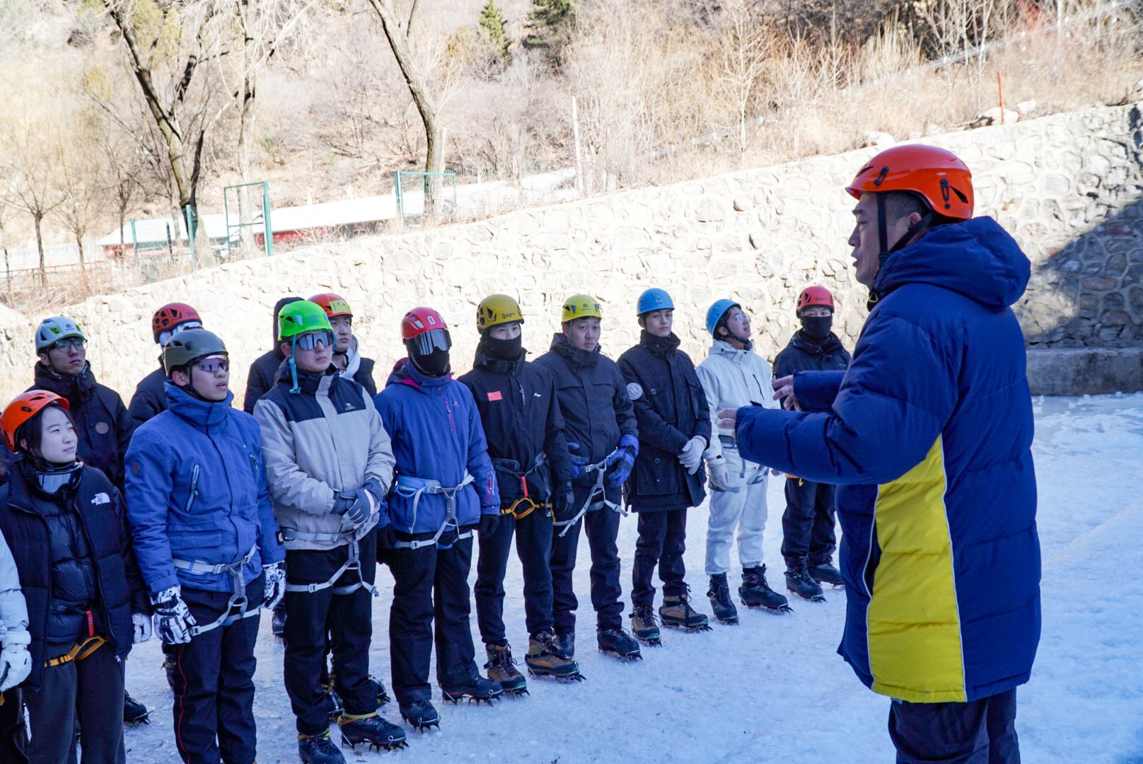 在攀冰过程中,安全至关重要。老师们着重讲解并演示了如何进行保护以及如何在冰上设置保护点。同学们两两一组,相互配合,学习如何正确地使用保护器、如何系好安全绳、如何在队友攀爬时给予稳定的保护。在一次次的练习中,他们明白了团队信任与协作的关键意义,每一个保护动作都关乎着队友的生命安全,容不得丝毫马虎。