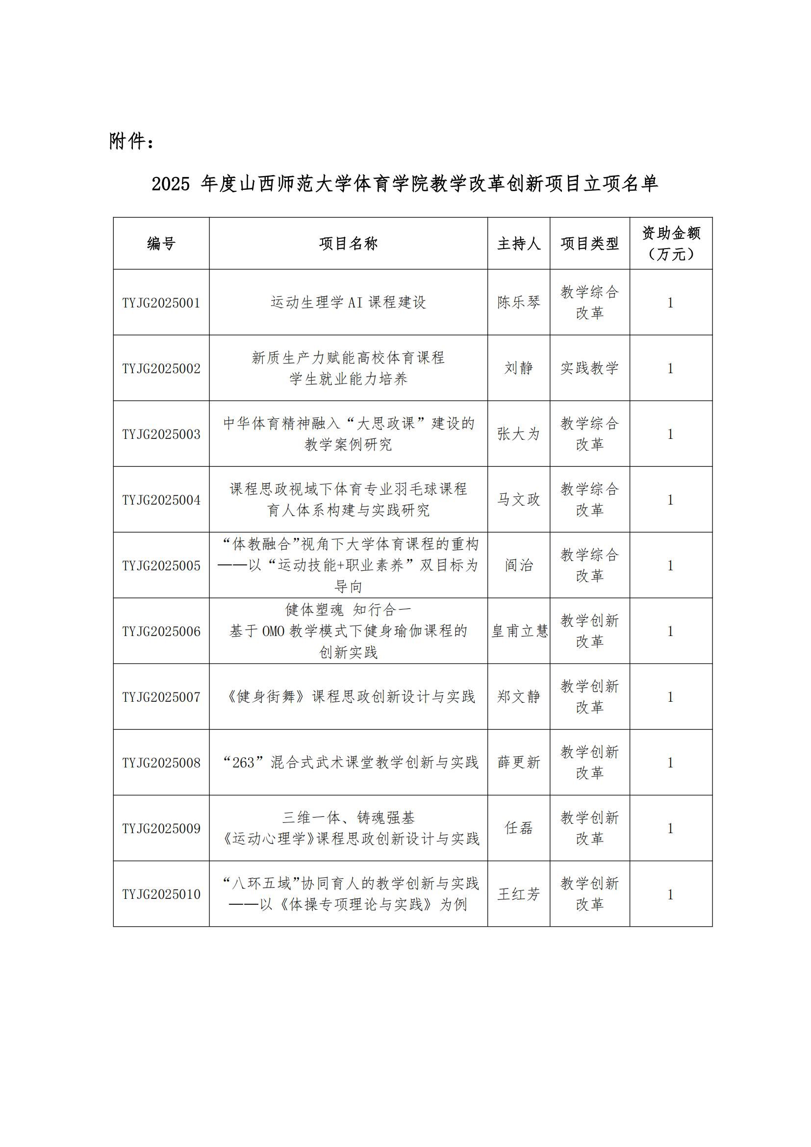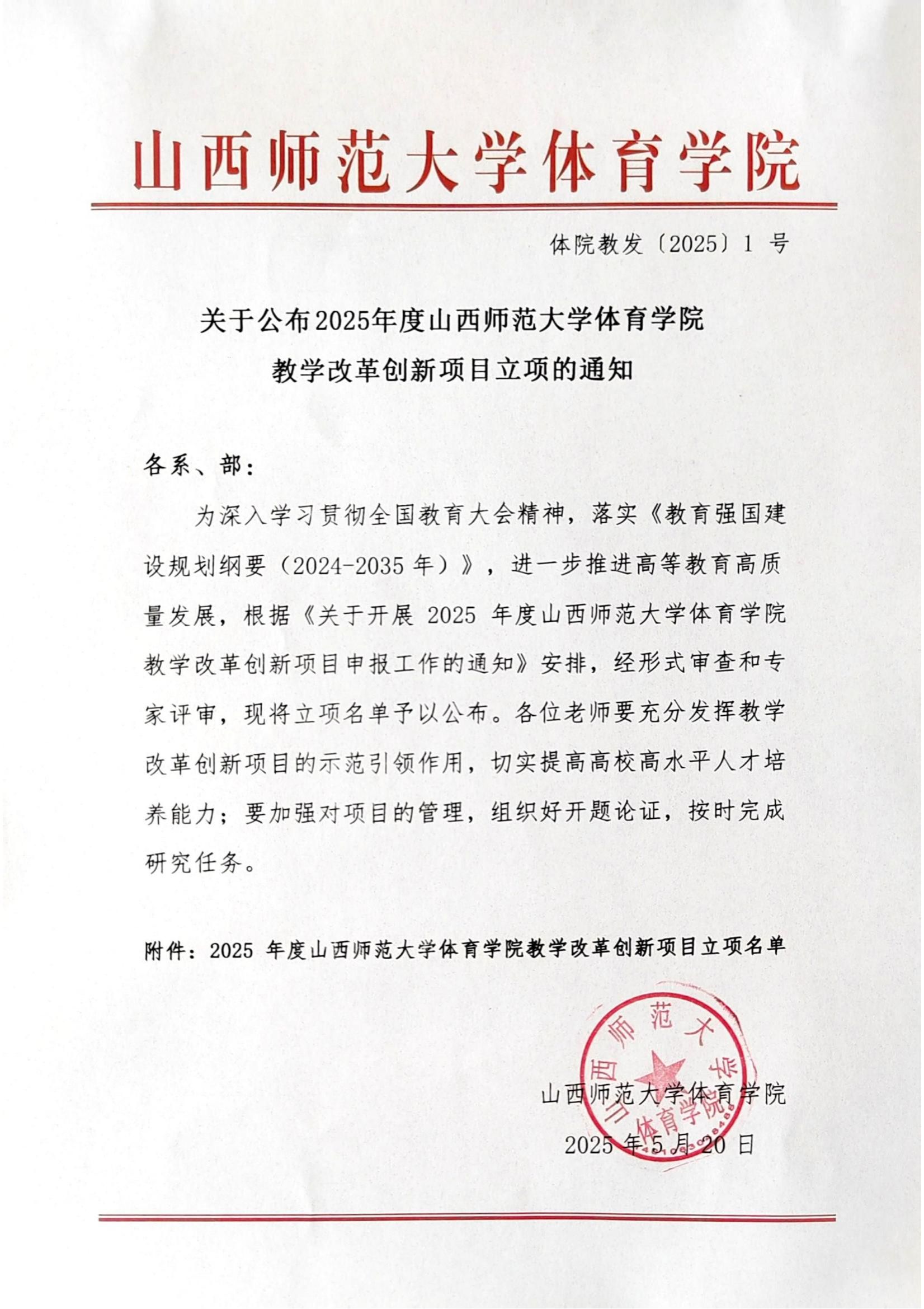 关于公布2025年度VSport教学改革创新项目立项的通知