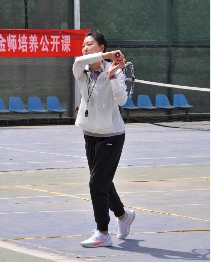 李瑞琴老师毕业于北京体育大学体育教育训练学专业,在网球、体育竞赛学等课程教学方面经验丰富。此次教学,她聚焦“正手击球技术”,从基础动作规范讲解,到引导员工在实践中感受击球节奏、掌握力量传递,把理论知识巧妙融入一次次练习中,让员工逐步掌握技术要点,扎实的教学能力展露无遗。