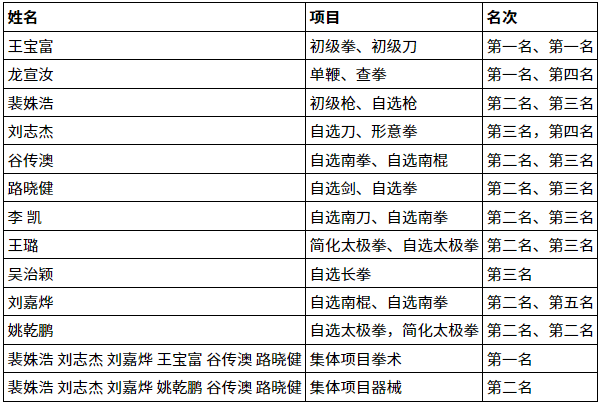 12名参赛运动员通过半个月的集中训练,在刘剑教练精心指导下,运动员奋力拼搏、团结协作,取得一次次骄人成绩,为公司争得了荣誉。刘剑老师被评为优秀教练员,裴姝浩和李凯同学被评为优秀运动员。(民传系 供稿)