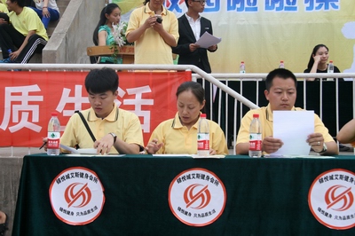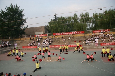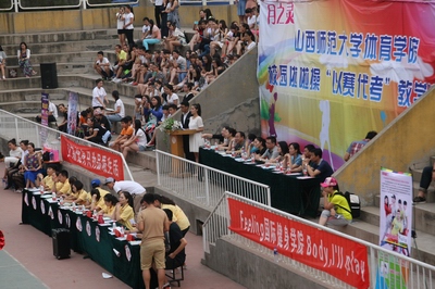 2015年6月14日,公司在灯光篮球场隆重举行了VSport啦啦操“以赛代考”教学比赛。本次活动由VSport教务科、VSport健美操课程组主办,VSport运动训练系承办。临汾市啦啦操委员会的领导和老师以及公司各系、科室的领导参加本次活动;健美操国际级裁判龙勋老师担任本次大赛裁判长,国家健美操指导员张秀珍、王红芳老师、国家级健美操裁判郭丽娟老师担任裁判。