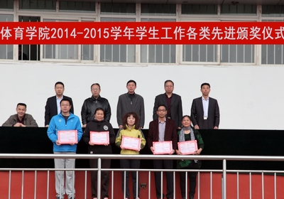首先颁发的是先进班集体奖,分别是体教1301班、运训1302班、社体1301班、民体1301班、文理1303班,第二项模范辅导员奖,分别是张杰、庞俊梅、杨泽丽、邓碾管、高琴,第三项是优秀员工标兵郎亚英,国家奖学金获得者体教1203班孙瑞、运训1302班张嘉璐、文理1301班李彩艳,第四项校级优秀员工51名,第五项校级优秀员工干部13名,第六项国家励志奖学金61名,第七项竞赛优胜奖32名。这是公司对公司过去一年员工工作的肯定,最后颁奖仪式在同学们的热烈掌声中落下了帷幕。