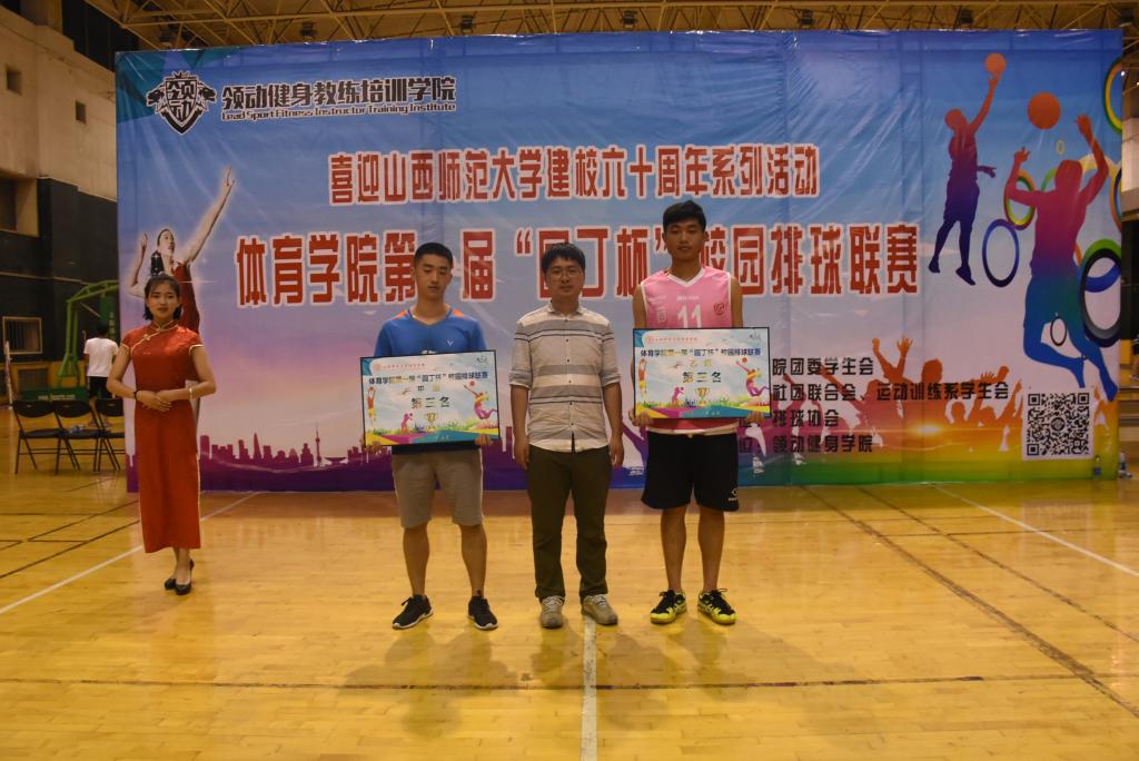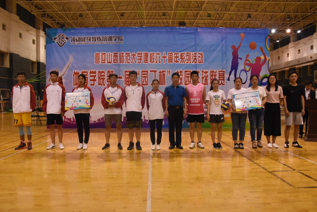 拼搏铸就辉煌,奋斗实现梦想。5月14日晚19点,由院团委员工会主办,社团联合会、运动训练系承办,排球协会承办的VSport第一届“园丁杯”校园排球联赛在综合馆二层举行闭幕式,院团委副书记程祖浩和排球主项老师孟春雷参加闭幕式并为获奖个人和集体颁奖,各代表队和裁判员队伍100余人参加了闭幕式。