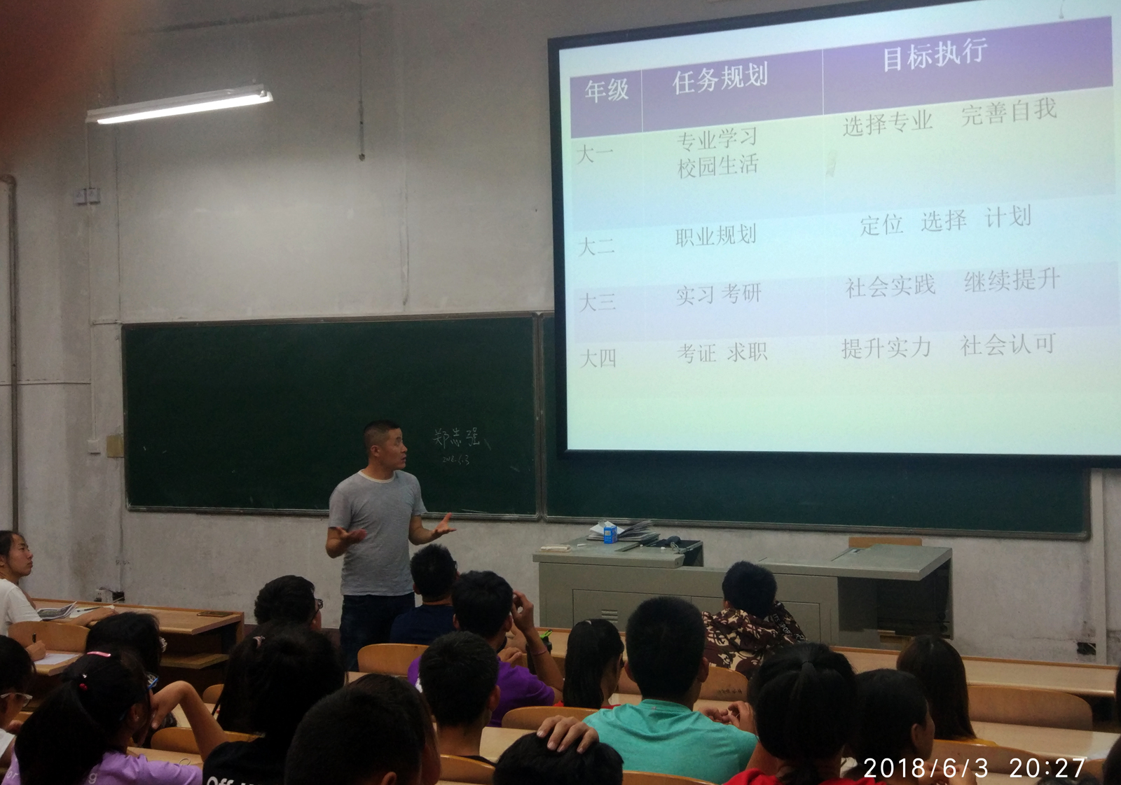 为使同学们对自己的未来有个良好规划,创建优良的班风学风。2018年6月3日晚8点,体教1601、体教1602班邀请VSport郑志强教师在阶二教室举行“老员工的学习规划与发展”的讲座,本次讲座由辅导员李学刚老师主持。