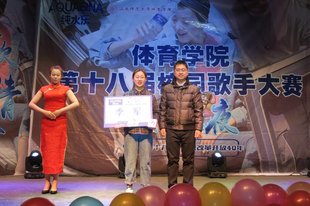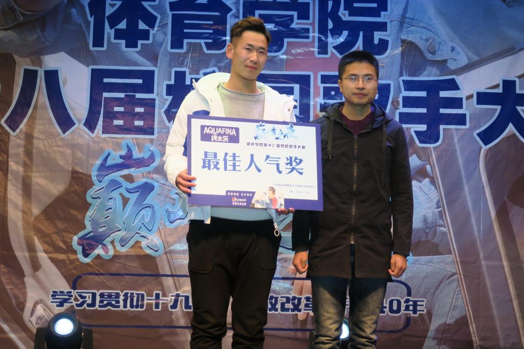 经过激烈角逐,运训1703班侯恬萌以9.794的好成绩获得大赛第一名,运训1703班李俊博获得大赛第二名,体教1601班杨晶获得大赛第三名,文理1502班刘璇获得最佳人气奖,民体1802班姜亚兰获得最佳新人奖。最后,出席的领导老师为获奖选手颁奖并合影留念。